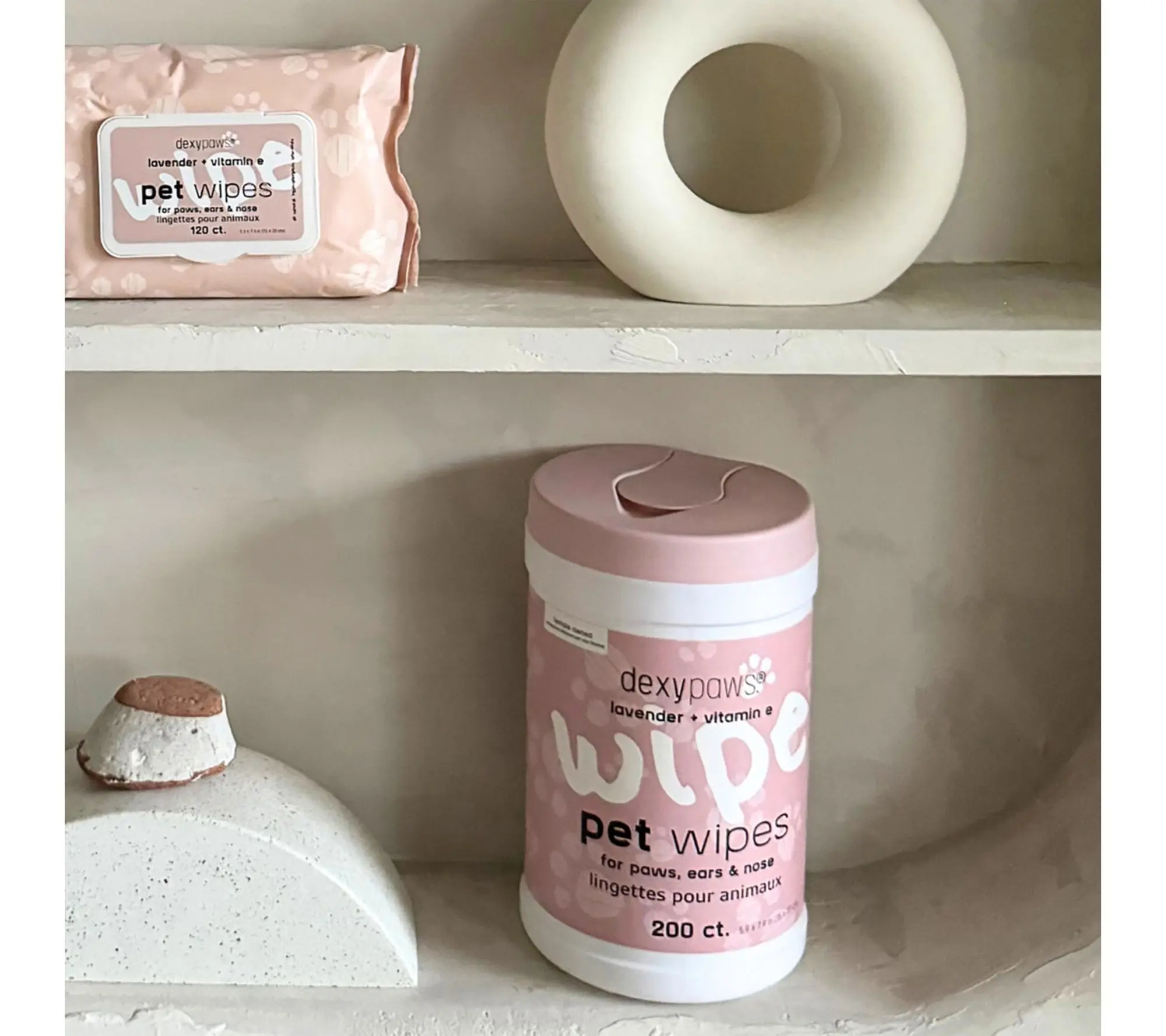 Effortlessly tackle muddy paws and post-playtime messes with these pet cleansing wipes, infused with soothing lavender and vitamin E for gentle care. The handy canister keeps all 200 wipes fresh and moist, so you're always ready for quick clean-ups at home or on the go. From Dexypaws.