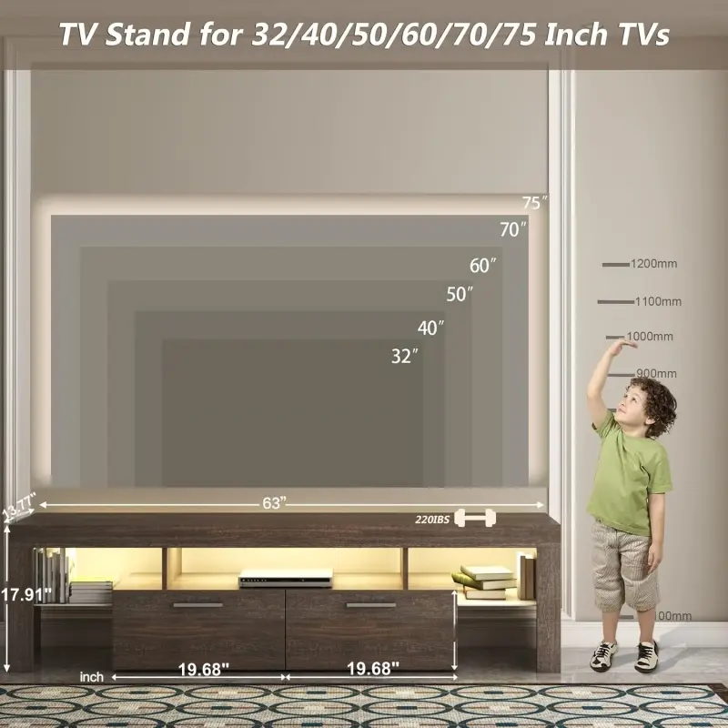 ·[TV Console Table for Bedroom Living Room]This 63" TV stand is suitable for lounge room,living room,bedroom for up to 75-inch TV.Dimensions: (63 x 13.77 x 17.91)"(L x W x H).