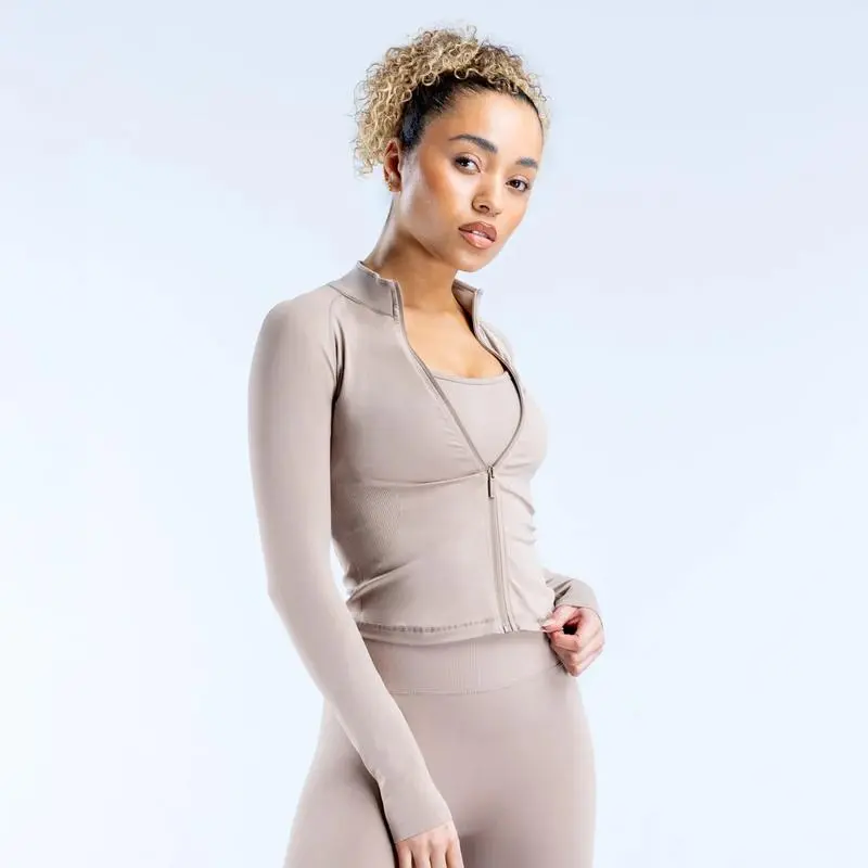 5. For fitness attire, the long sleeve zip-up DFYNE Dynamic Zippy Gym Jacket is excellent, and it matches Dfyne Women's Seamless pieces nicely.