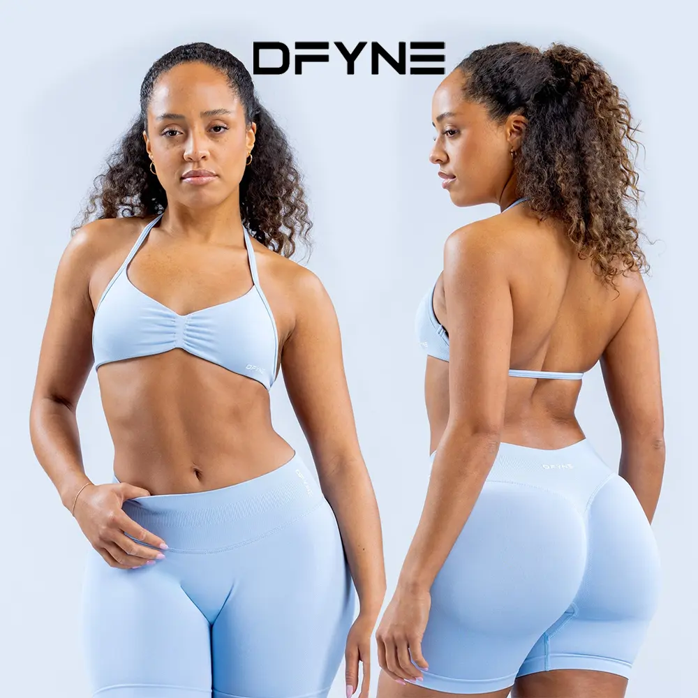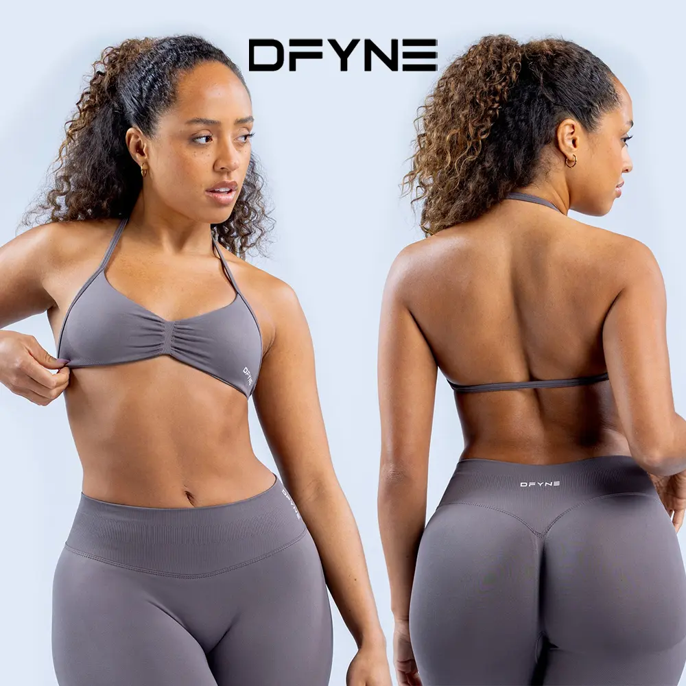 DFYNE Impact Sports Set - Seamless Sculpt Fit with Strappy Back High-Waisted Bottoms & Ultra-Flattering Activewear Look for Athletic Workout Clothing Sporty Breathable Outfits Athleisure Sweatsuit