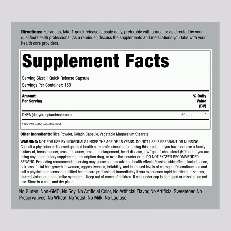 Piping Rock DHEA 50 mg | 150 Capsules | For Men and Women | Dehydroepiandrosterone Supplement | Non-GMO, Gluten Free