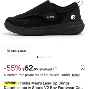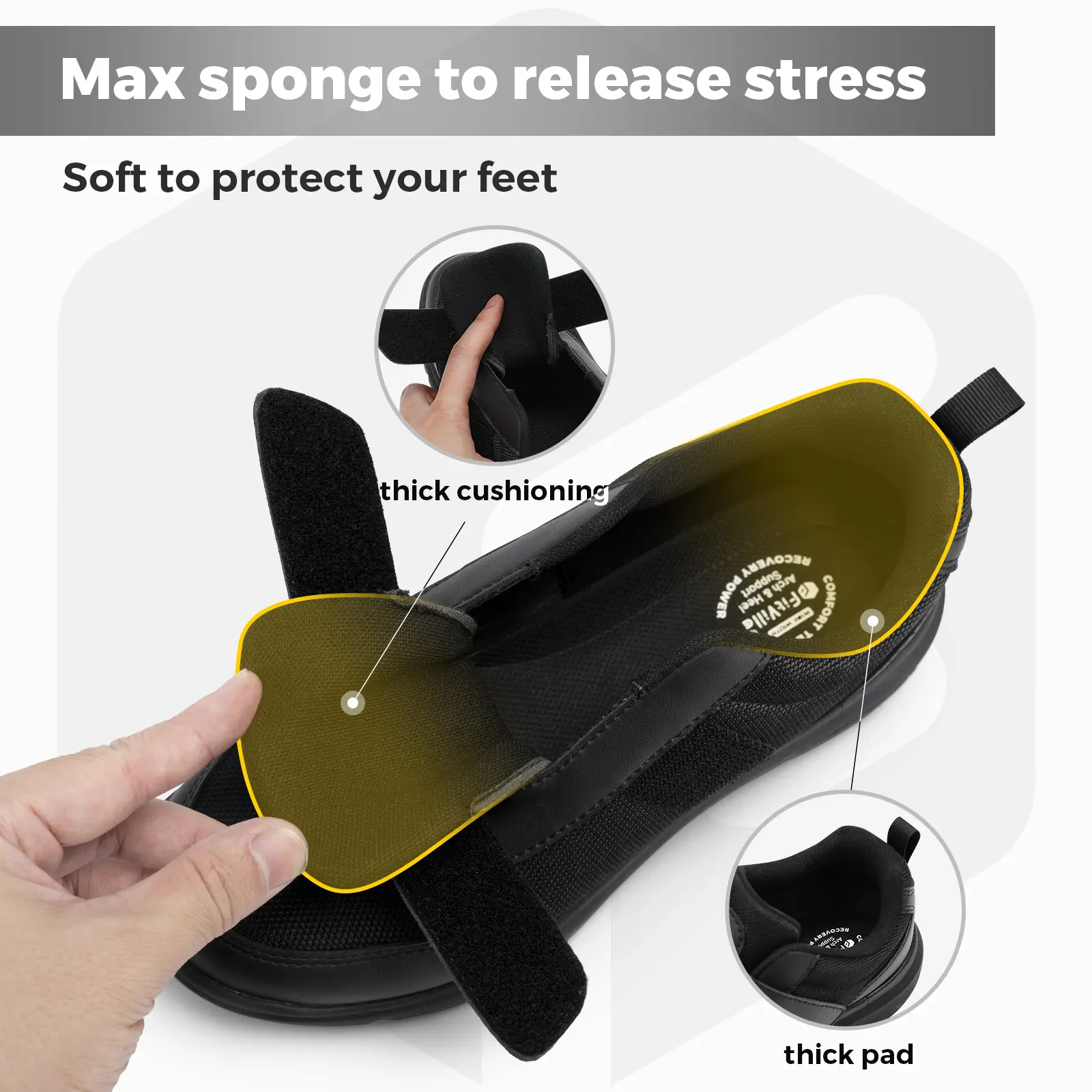 The EasyTop® Wings V2 ticks all the right boxes for ones with wide, swollen, or diabetic feet. One of the best features is the Velcro strap closure with a wide open upper design, fully adjustable to ensure no squeezing or rubbing your feet while putting it on and off. The ultra-soft foam padding reduces pressure from the exterior while the stitch-free interior design eliminates friction. The patented sole has a high rebound EVA sole, providing stable support and reducing shock.