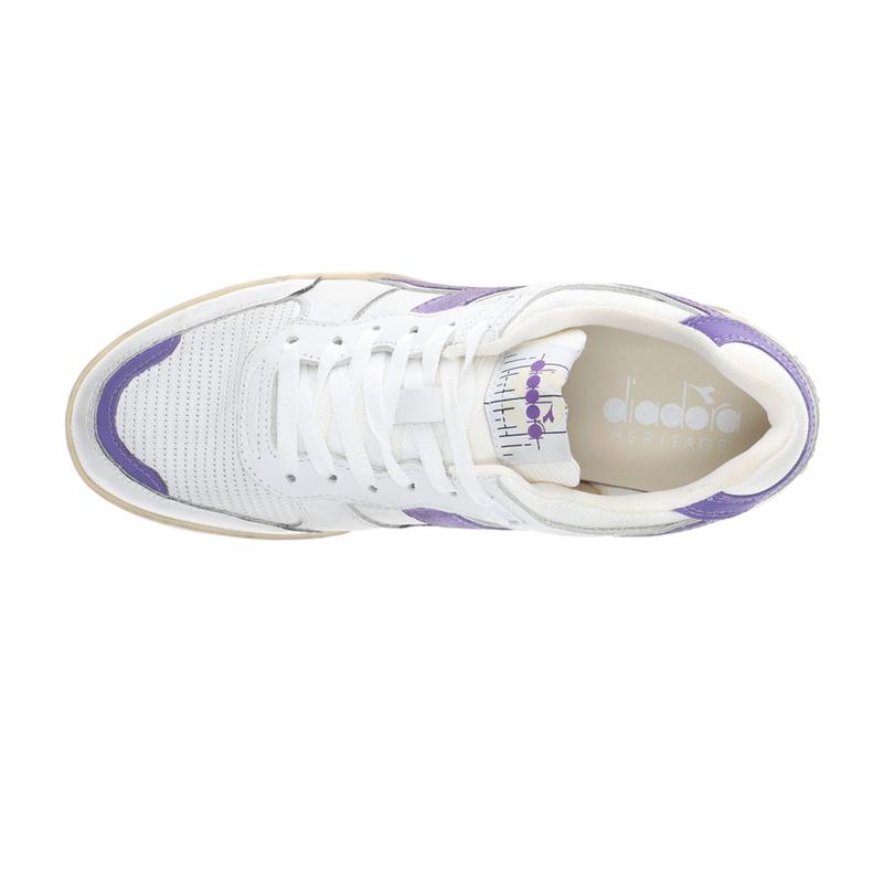 5. diadora Mens B.560 Used Lace Up Sneakers Shoes Casual - Purple, White