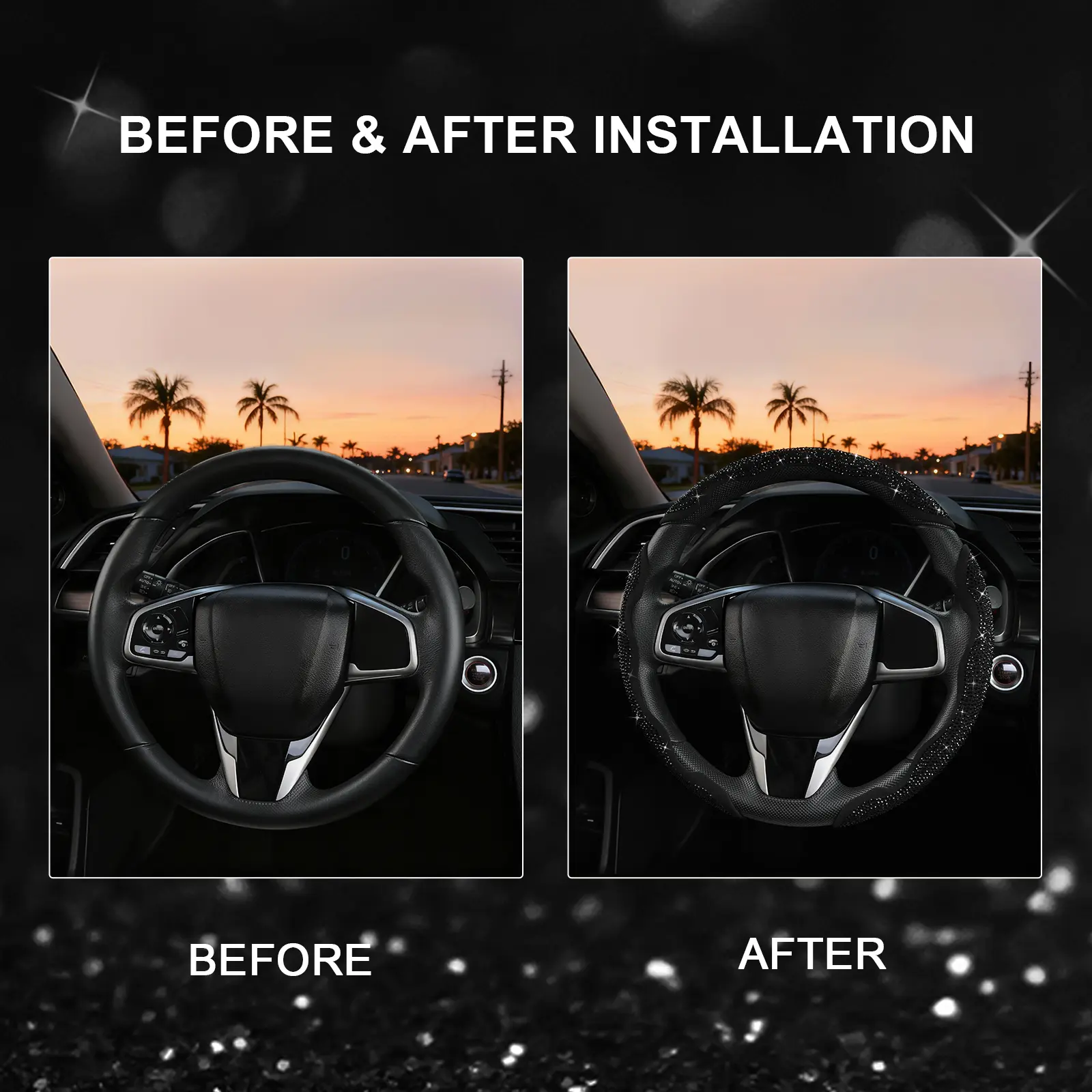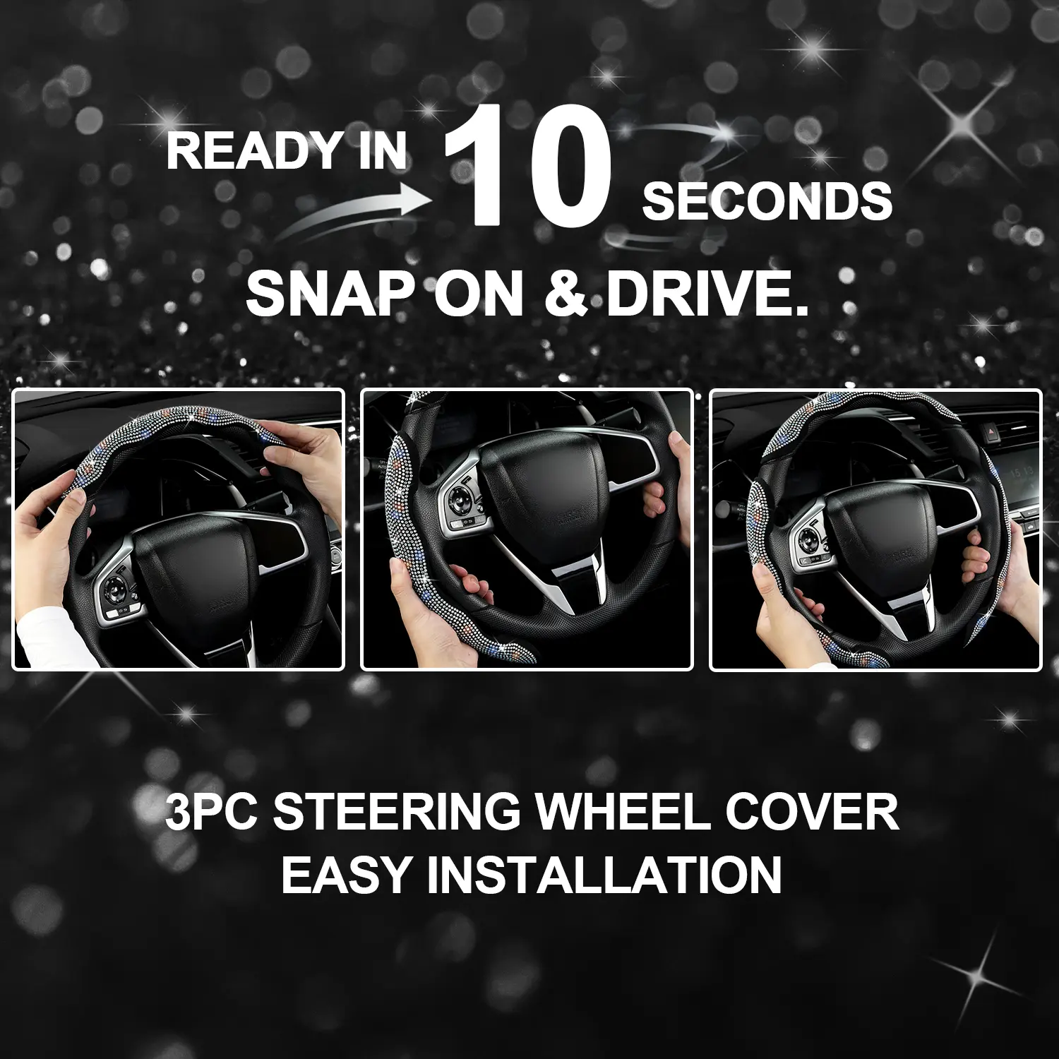 Easy to place on your steering wheel. Gives your car a little dazzle. Would definitely recommend.