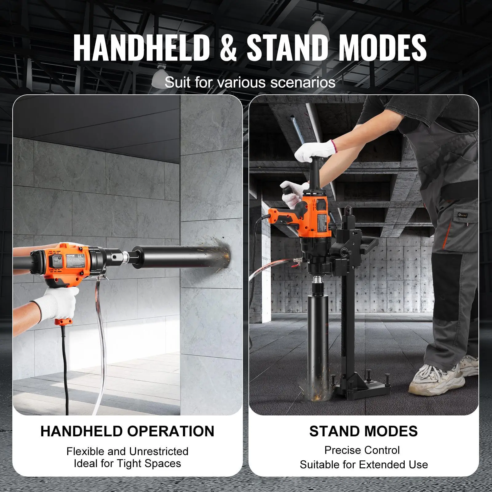 ·Handheld & Stand-Compatible: The core drill machine's handheld mode is perfect for tasks requiring flexible mobility and precise control, such as home repairs and small drilling projects, making operation smoother and more convenient. The stand mode provides strong support for larger projects and high-stability drilling tasks.