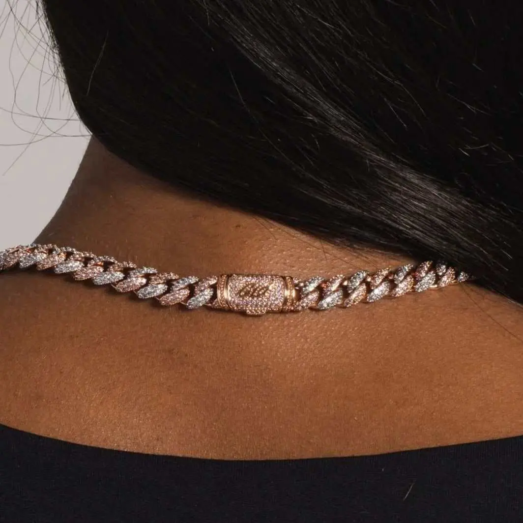 The bestselling Diamond Cuban Necklace is now available in our unique two-tone (White/Rose colorway). GLD custom-designed and molded this unique link that features hand-set, prong-lifted stones that shine from all angles. Only found at GLD. You know you'll stand out when you're rockin' this piece.