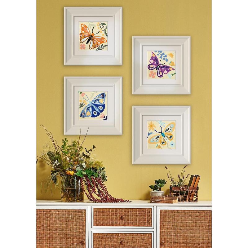·Set of 4 butterflies each with distinct colors and floral accents.