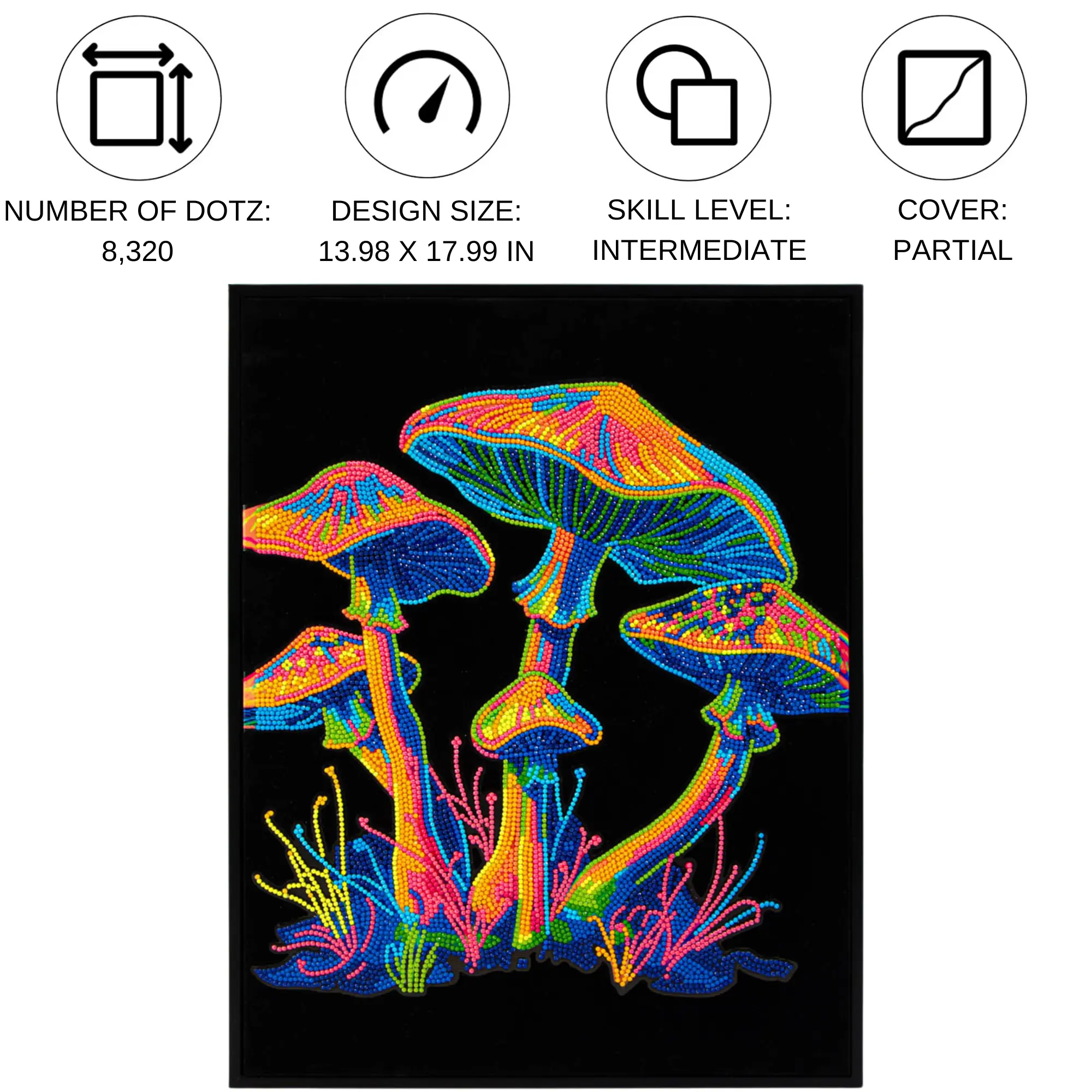 Each kit includes everything you need – pre-printed flocked design, neon Dotz, stylus tool, wax, and tray – making it easy for anyone (beginner or pro!) to create a glowing masterpiece that stands out day or night.