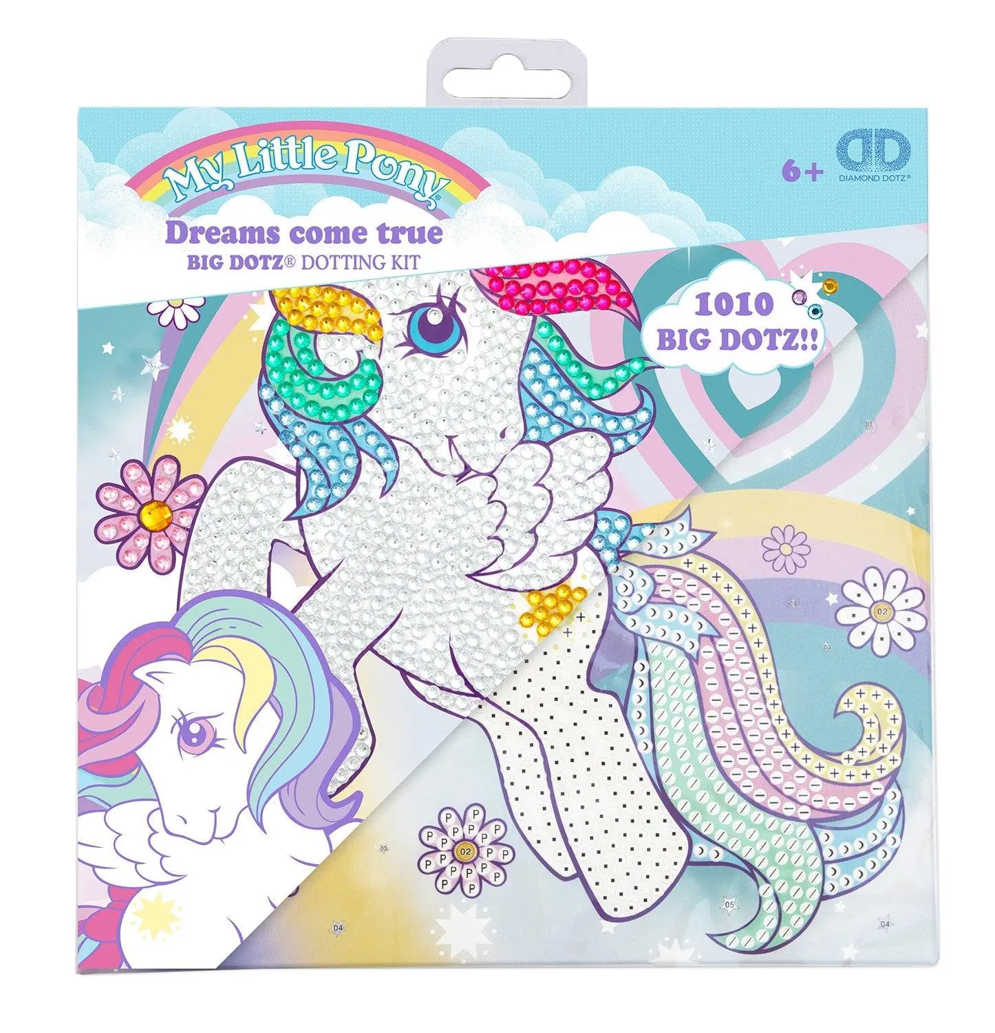 Let imagination take flight with the Diamond Dotz Dreams Come True kit! This adorable design features a flying white unicorn with a sparkling body rainbow mane and tail and flowers blooming all around. Set against a dreamy pastel sky it’s the perfect choice for anyone who loves magical creatures and colorful creativity. With 1 010 Round Dotz and a Partial Cover this is a whimsical way to enjoy Diamond Painting Kits for Adults or introduce little ones to the joy of diamond art for kids.