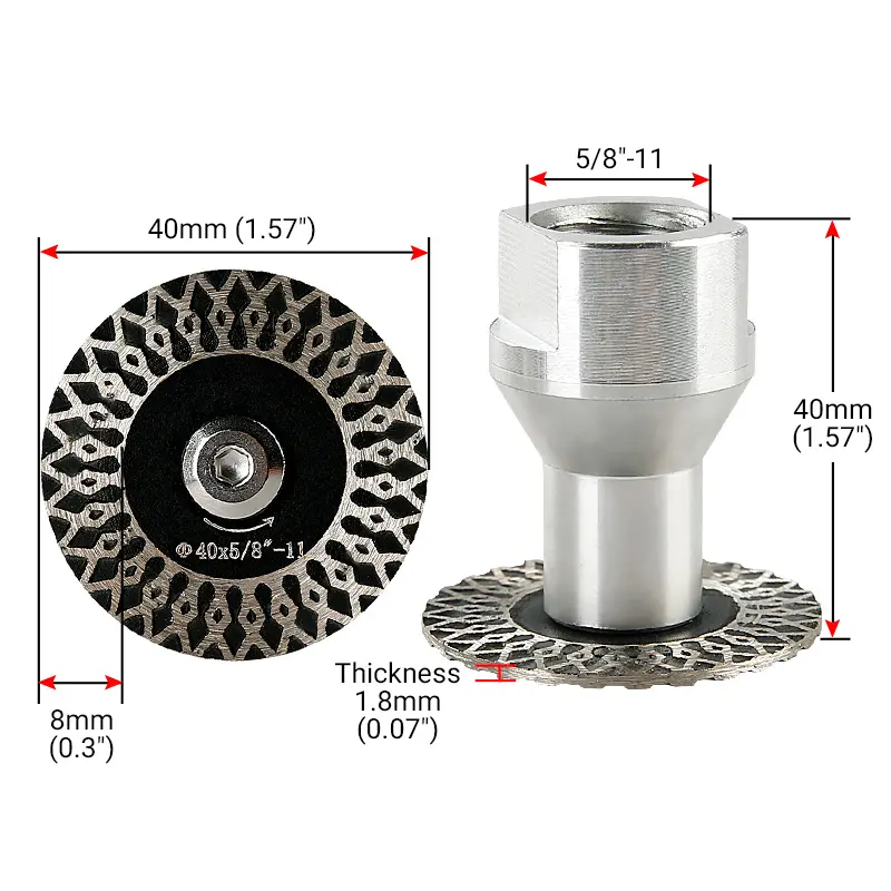 Ideal for granite, marble, tile, and PVC engraving. These rotary saw blades offer professional quality, fast, and smooth cutting. High efficiency ensures quick results. The 40mm 5/8-11 diamond saw blade features a removable flange for versatile use.