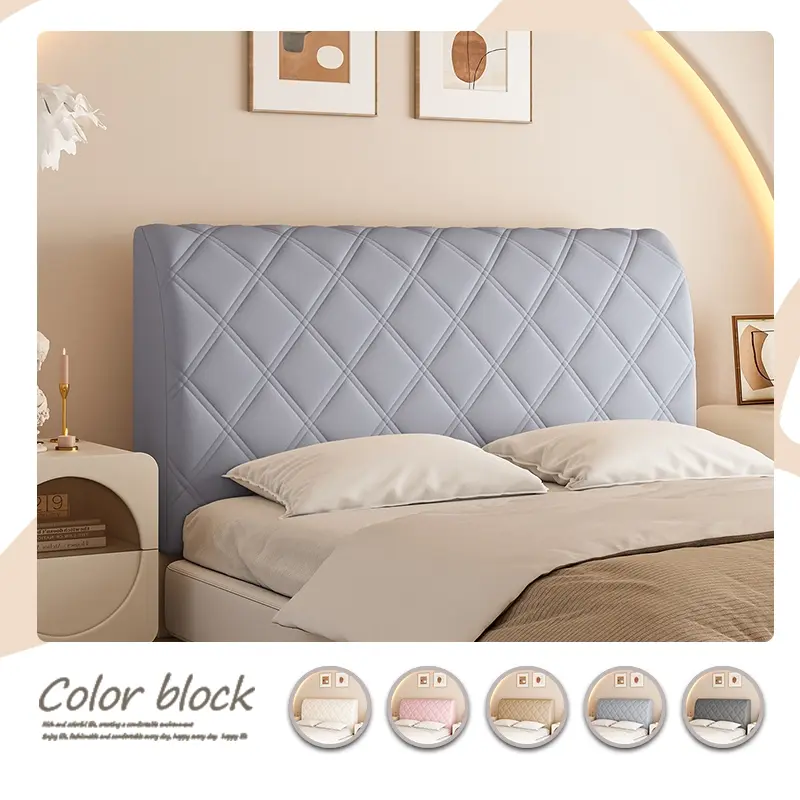 Diamond Grid Elastic Full Headboard Protector Cover, Polyester Material, Anti-Collision Dustproof, All Sizes, Soft Comfortable, Washable