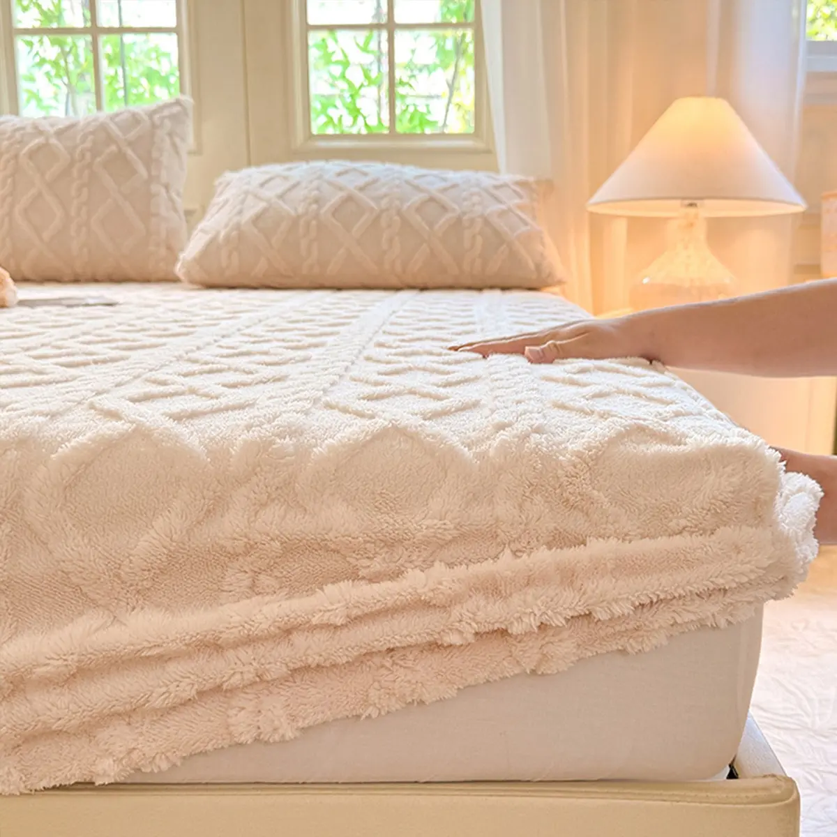 Diamond Pattern Bedding Set, Multiple Color Options, Soft Warm, Anti-Slip High Sides (11.81-13.39 Inches), Includes 1 Fitted Sheet & 2 Pillowcases