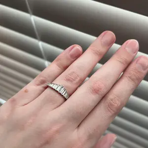 I was looking for a baguette style ring for the longest time and a diamond one is so very expensive. Saw this piece and bought it. It is amazing in person. The quality of the ring is fantastic and it looks like baguette diamonds. Beautiful work.