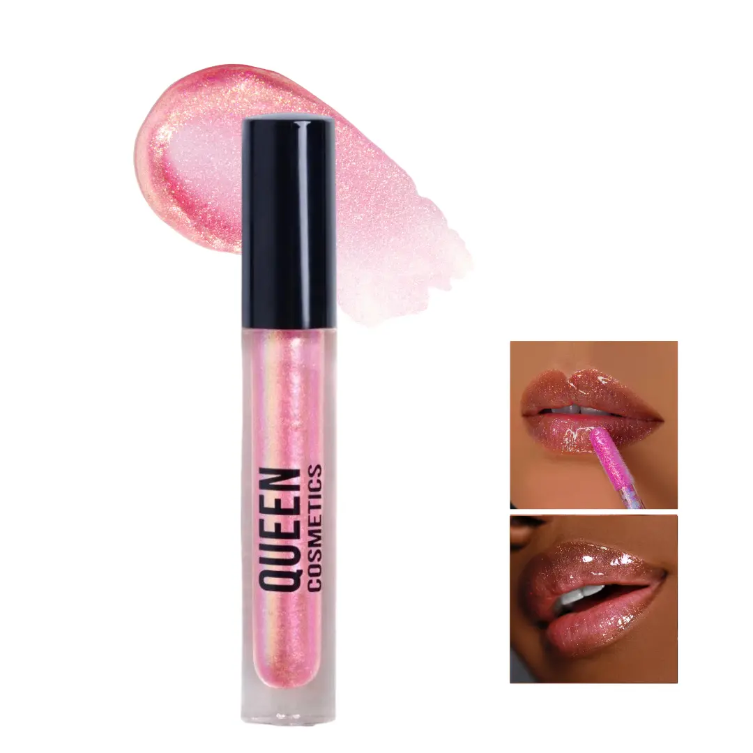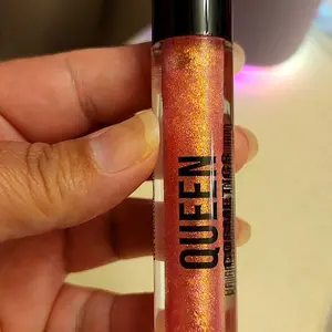 Very pretty! Deserves the name diamond gloss! The gloss is pink base with golden/magenta/pink. No scent, no grit, a more natural color as far as the diamond shine/ holographic glosses queen cosmetics offer ! All amazing. Top swatch in video, first gloss in pic of 3 , second to last in pic of 6