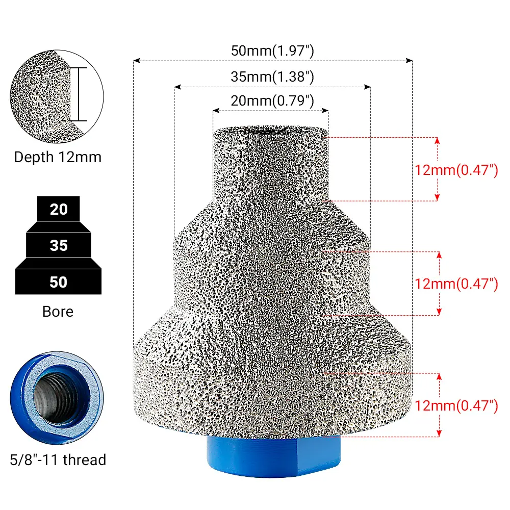 Es muy buen producto perfecto para trabajar con losa hace los hoyos de tres tamaños