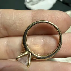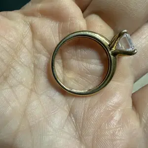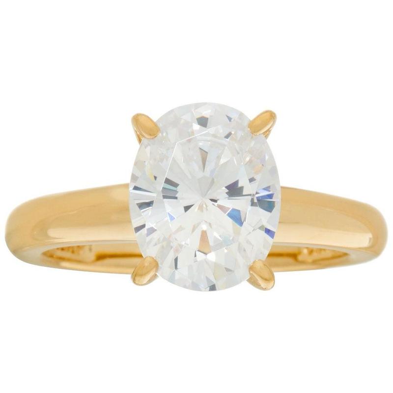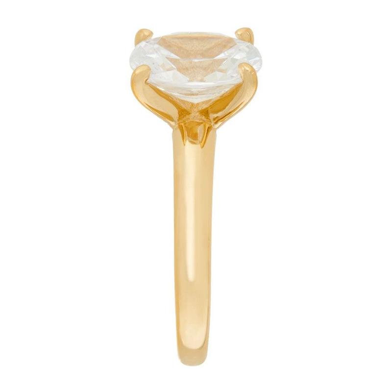The one. A single cubic zirconia Diamonique(R) simulated diamond beckons from atop this gorgeous Epiphany ring. Crafted of 14K yellow gold-clad sterling silver,the rounded band is a sleek foundation for the stunning sparkler.