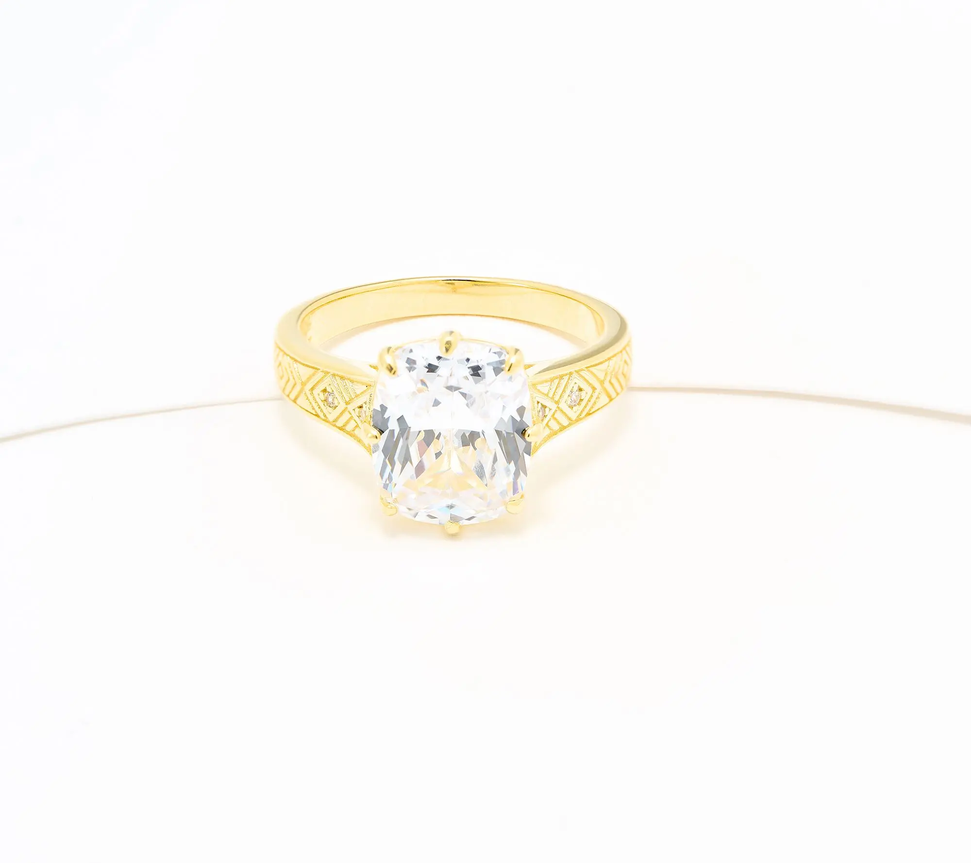 5. Diamonique Classics Cushion Cut Set Ring, Sterling