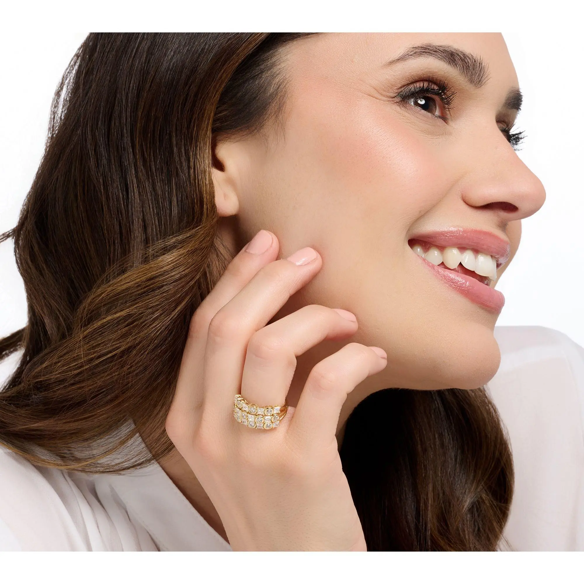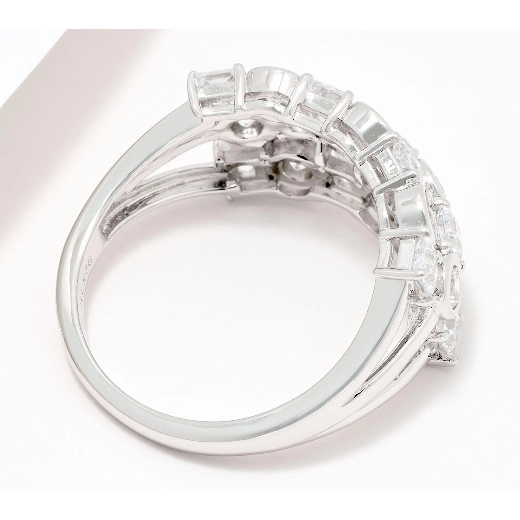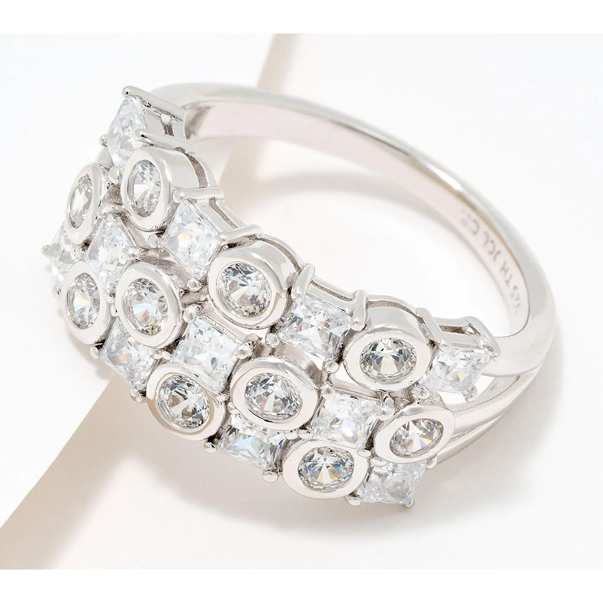 From Diamonique comes this mixed setting ring in sterling silver. Features DMQ simulated diamonds in a mix of prong set faceted princess cut stones and bezel set faceted round stones. Polished; 14K yellow gold plated or rhodium plated. Available in size 4 - 11; measures approximately 3/8"L x 6/8"W.. Total DE weight approximately 1.70cttw. Imported.