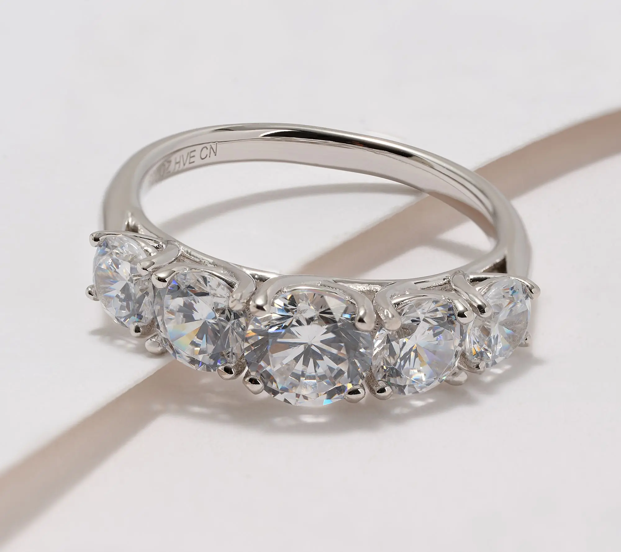 5. Diamonique Classics 5 Stone Ring, Sterling Silver
