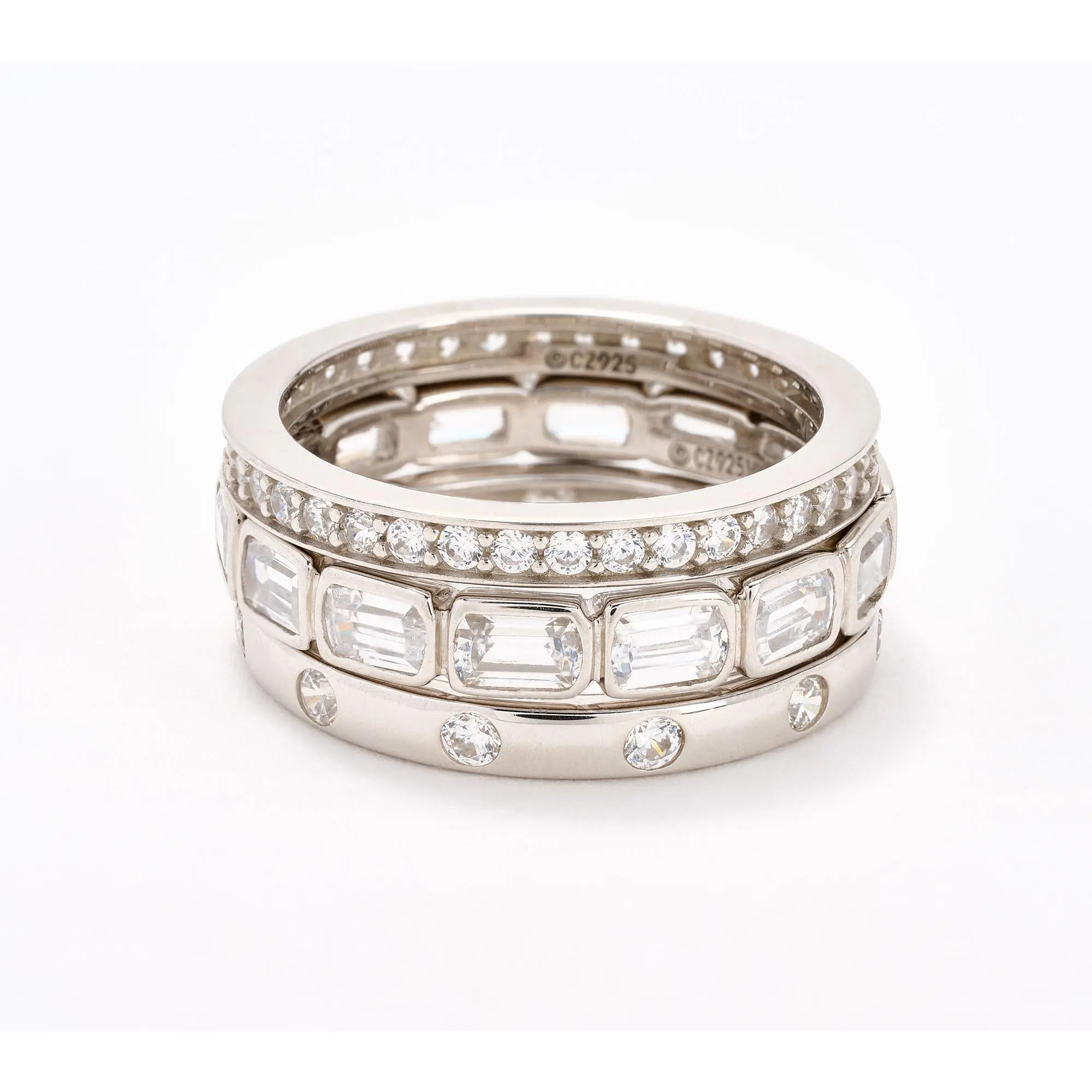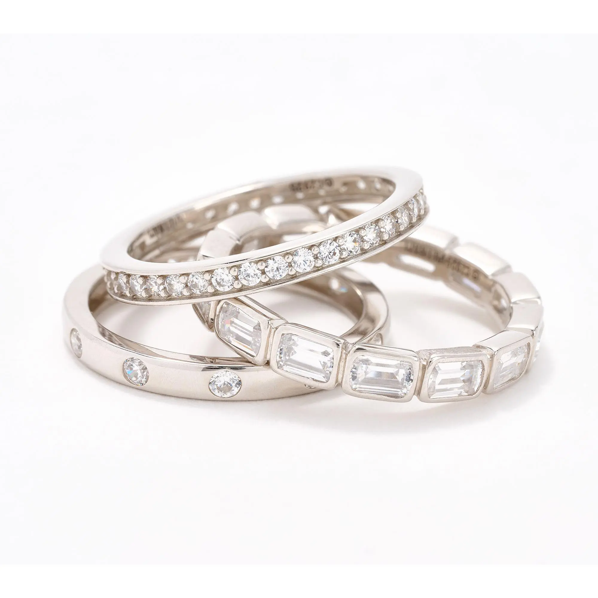 5. Diamonique Classics Set of 3 Band Rings, Sterling Silver