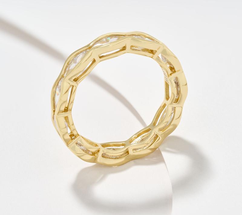 Diamonique Classics Wave Band Ring Sterling Silver w/Choice Rhodium or 14K Yellow Gold Plating. Polished Marquise, White, CZ Stones, DE cttw:2.5 - 3.25 Ring sizes: 4, 5, 6, 7, 8, 9, 10 ,11 Measures: 3/16 * 7/8 * 1/8 Actual CZ weight: 3.33 - 4.32 Imported.