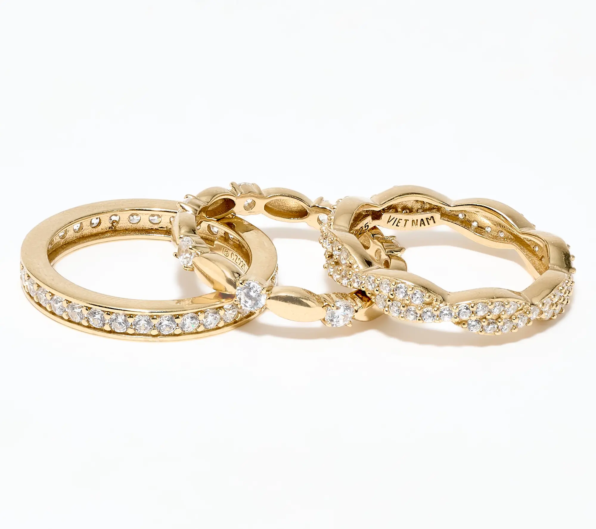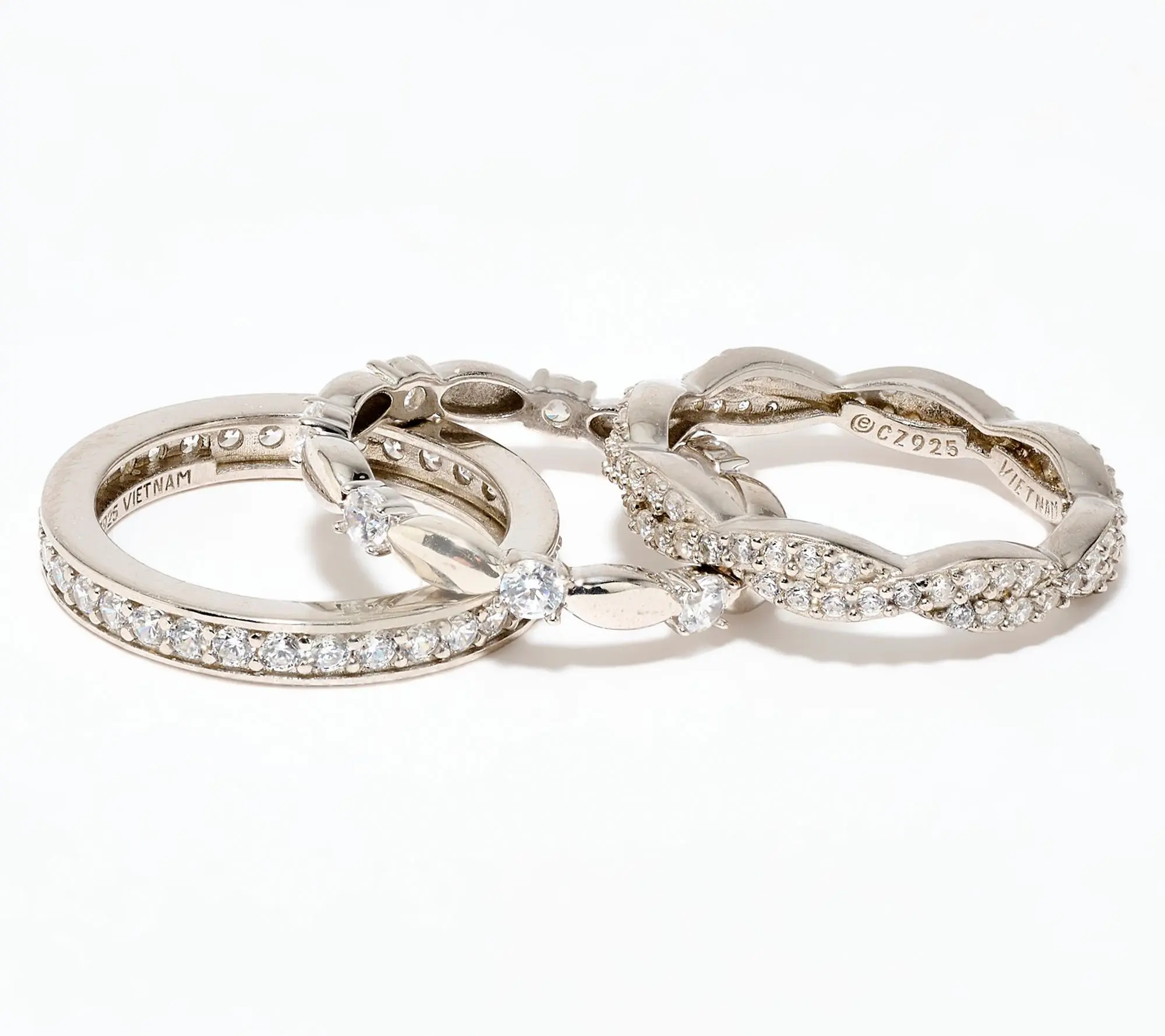Whether you wear one or wear all three, this stacking ring set adds chic shimmer to everyday looks and memorable moments alike. Sporting a fair amount of sparkle, each ring catches the light just right thanks to Diamonique simulated diamonds that dot the design.