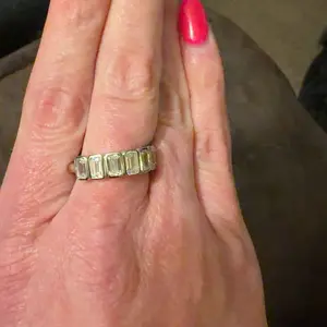 Gorgeous and sparkly ring. Looks great stacked or on its own. Been wearing on my pointer finger or middle finger Great deal for lots of bling.