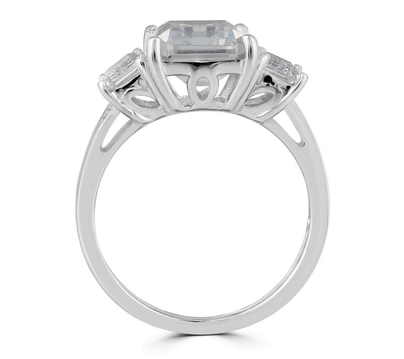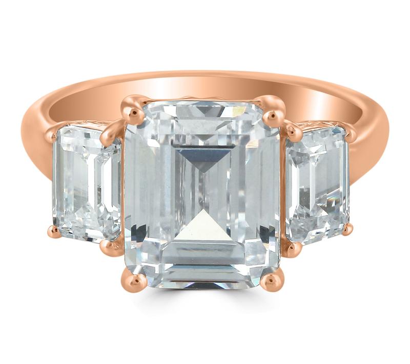 5. Diamonique x Kathy Levine Emerald Cut 3-Stone Ring, Sterling
