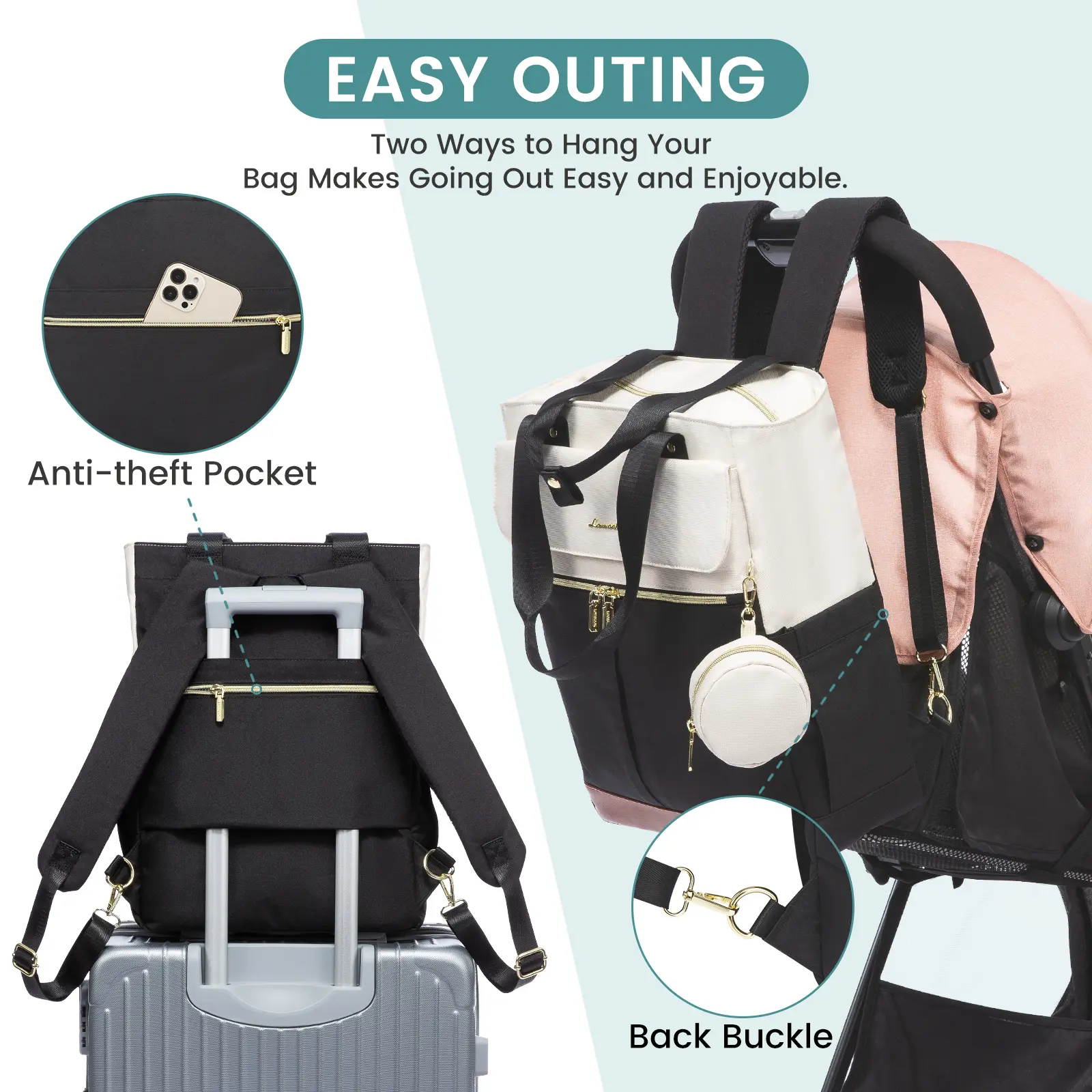 【Convenient Diaper Changing】Includes a waterproof, foldable changing pad that fits inside the bag, offering easy portability and convenience for diaper changes on the go.
