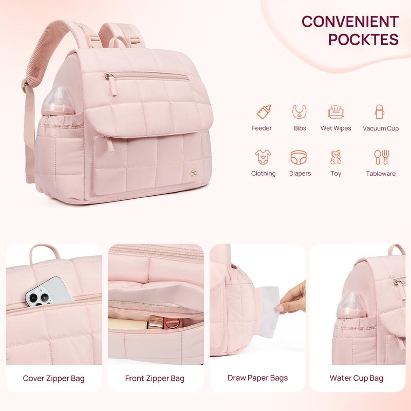 me encantó la pañalera! y el color ni se diga! pero me hubiera poder alcanzado a comprar la color caqui o negra que combine con todo! pero 10-10 me Encanta el color baby pink combina con mi stroller 🥰🫰🏼