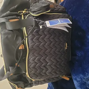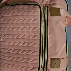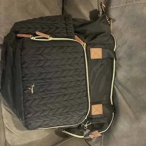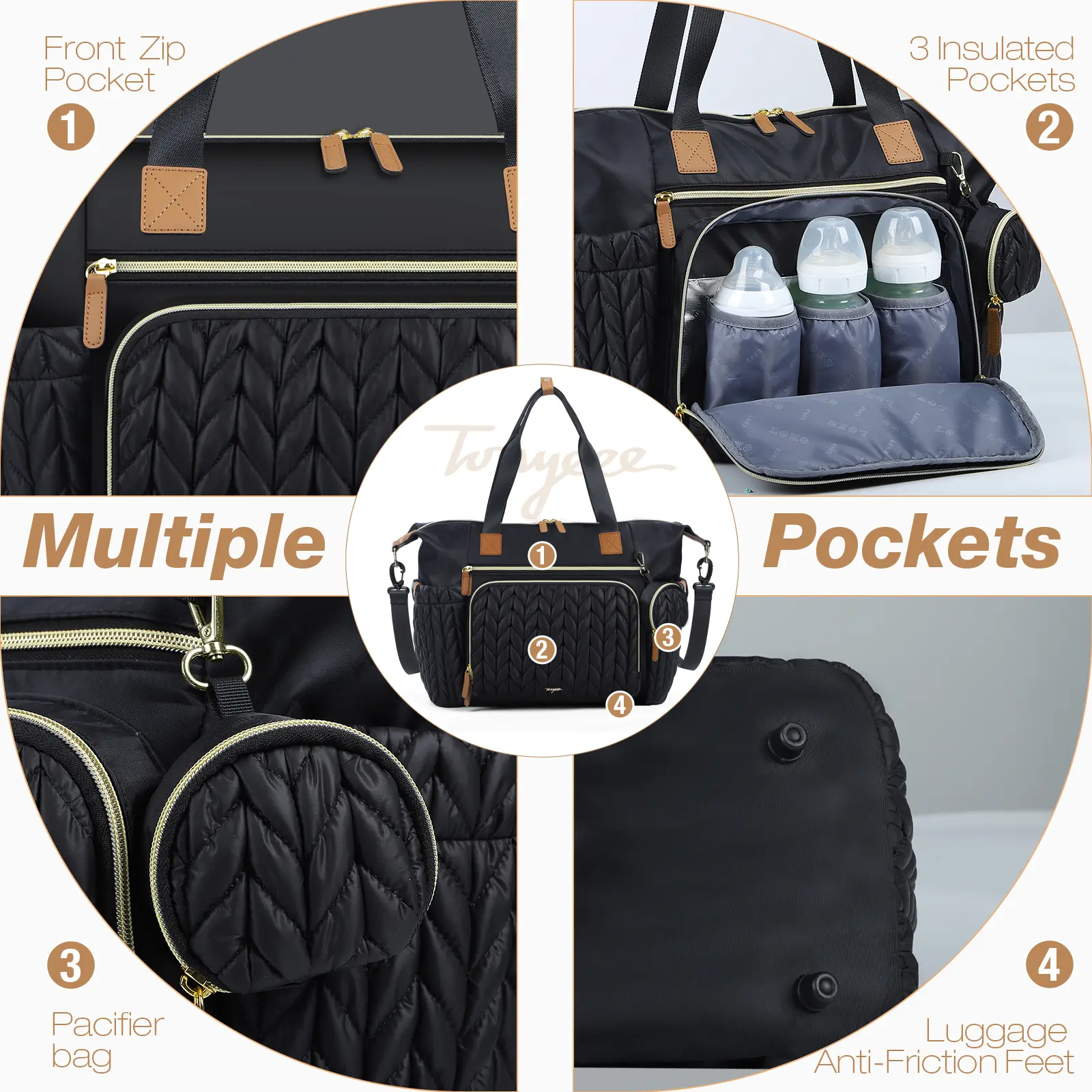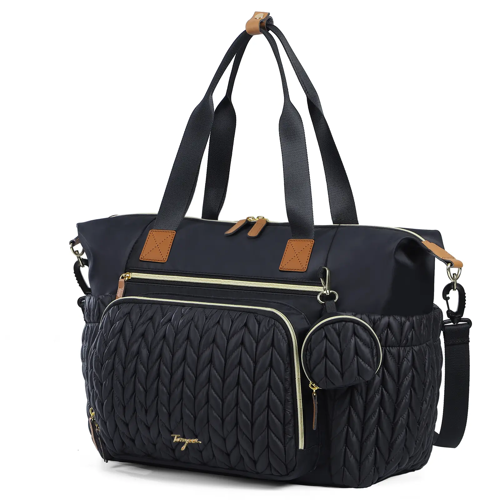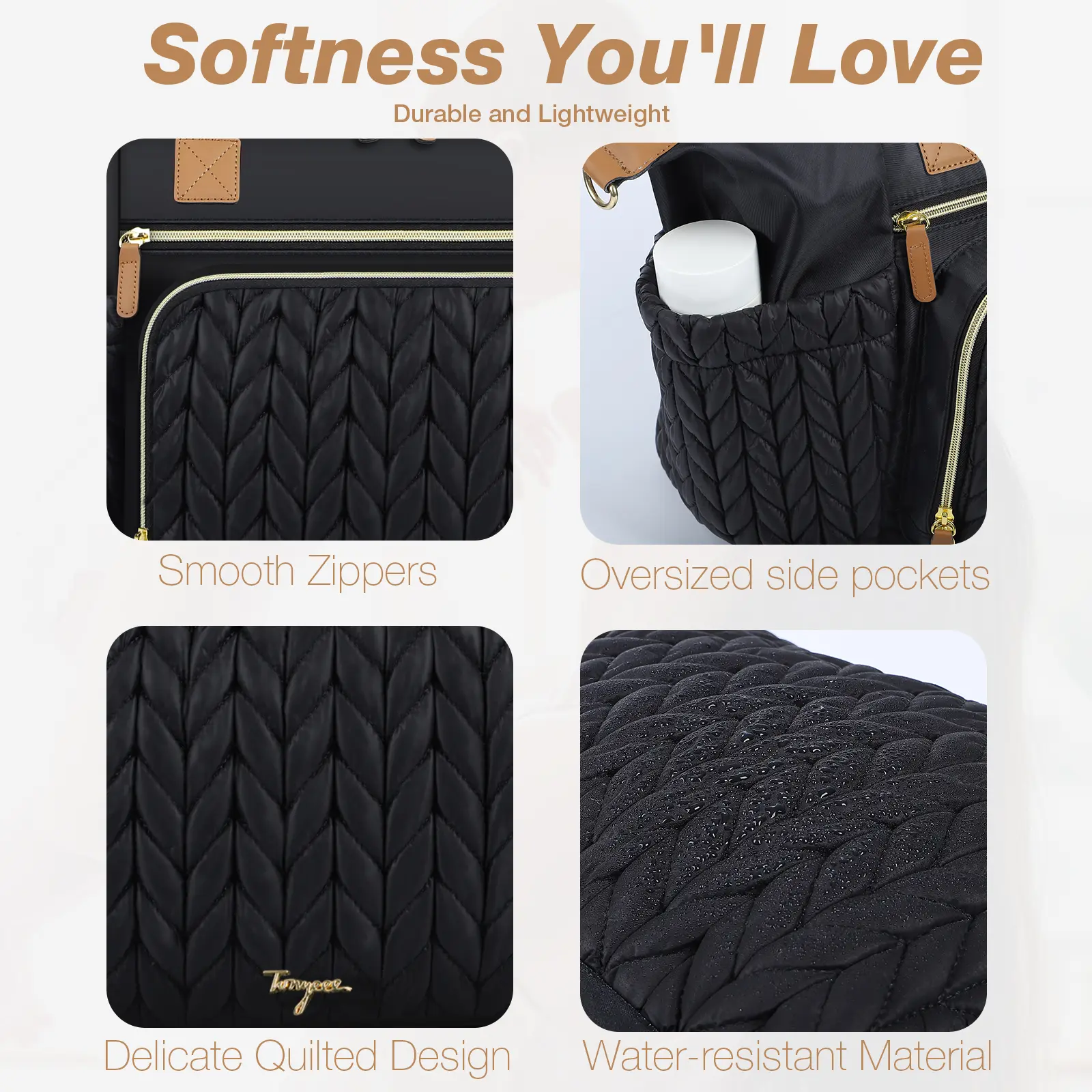 ·Quilted Design Meets Everyday FunctionalityCrafted with stylish 3D herringbone quilted nylon, this diaper tote blends luxury and practicality. Studded feet keep the bag elevated and clean on any surface – perfect for outings, errands, or work.