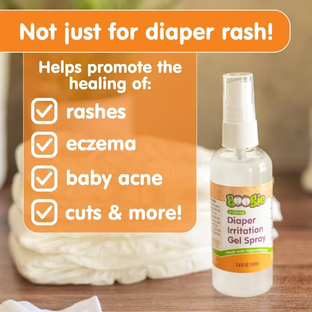 The Boogie Diaper Irritation Gel Spray is a gentle, mess-free gel spray designed to support everyday skin care for babies with irritated or sensitive skin. Powered by hypochlorous (HOCl), this sting-free spray helps gently cleanse and support skin comfort during diaper changes—without rubbing or messy creams.