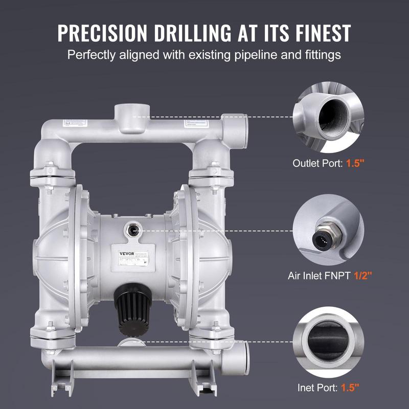 • Exceptional Pneumatic Performance: Elevate your fluid handling with our air diaphragm pump! It boasts standard inlet/outlet dimensions of 1.5 inches and an air inlet size of FNPT 1/2 inch, designed to seamlessly integrate with your existing pipelines and fittings, enhancing its pneumatic performance. Embrace the power of professional pneumatic design in your operations today!