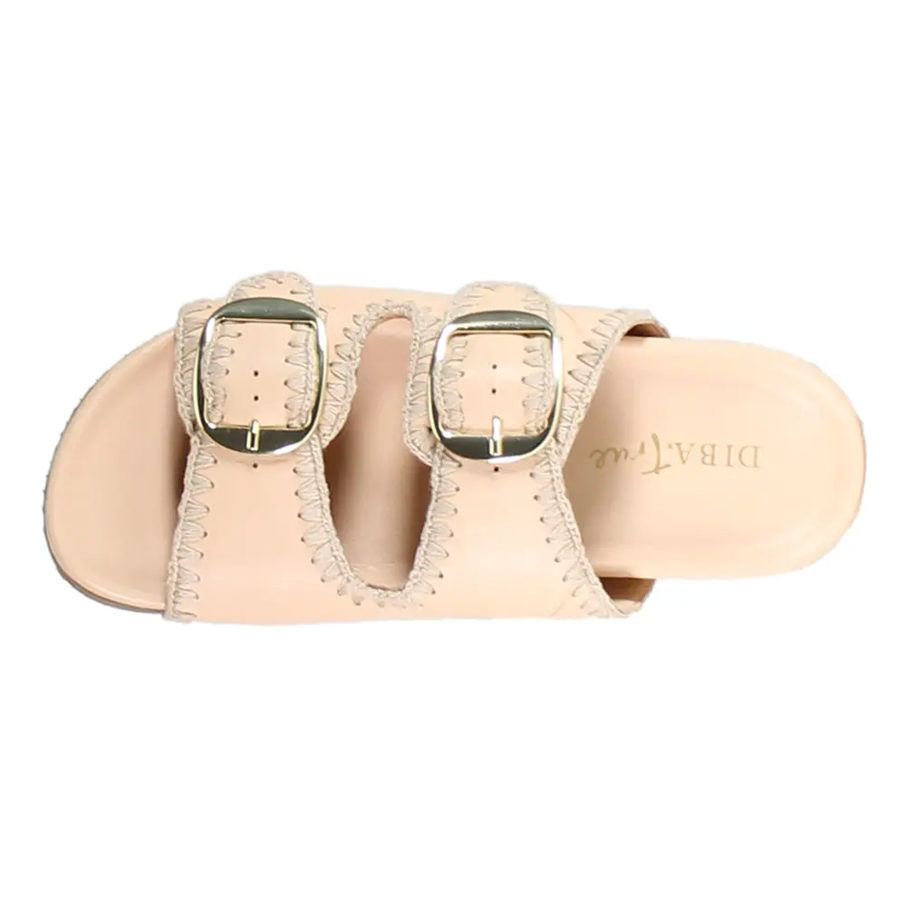 Look effortlessly stylish in the SEE YA SOON by Diba True slide sandal featuring a double buckle closure and intricate stitching detail. The comfortable footbed makes this sandal a summer go-to.