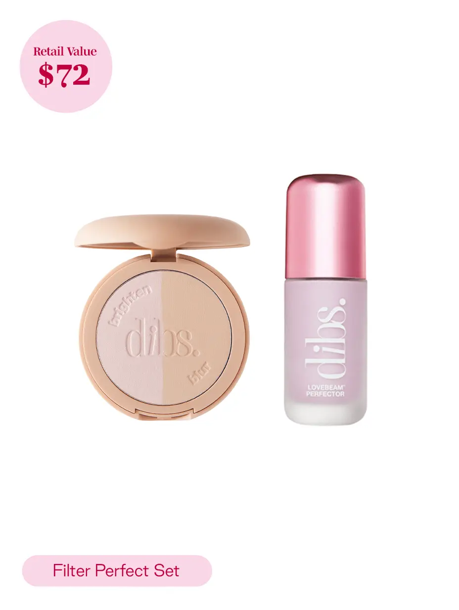 these two products are the definition of filtered skin the LoveBeam is what I use as a base under my foundation for that glow and the pressed powder I use under the eyes to set or as a touch up powder for blurred skin ✨  #dibsbeauty #filteredmakeup #tiktokshopcreatorpicks #glowymakeup #glowymakeuptutorial @DIBSBEAUTY