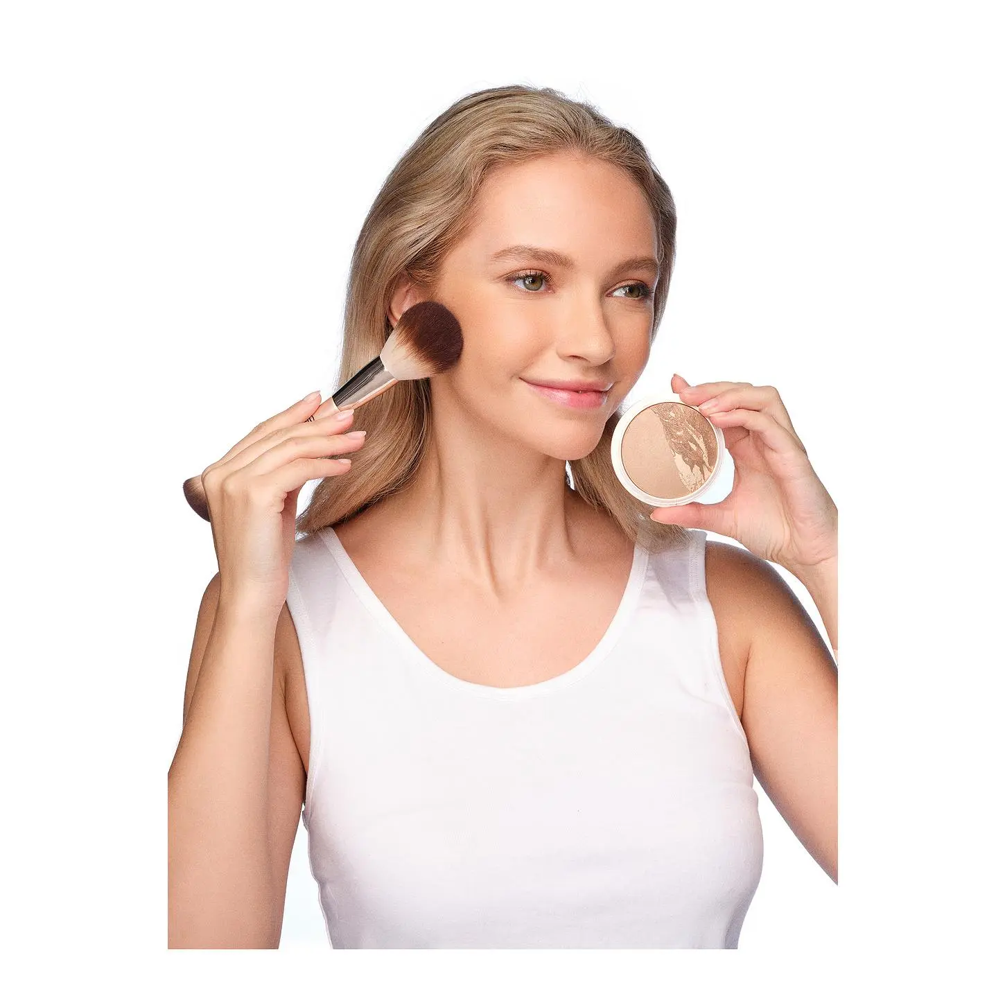 ·To contour the cheekbones it is recommended to use the solid side and the marble glow side to highlight