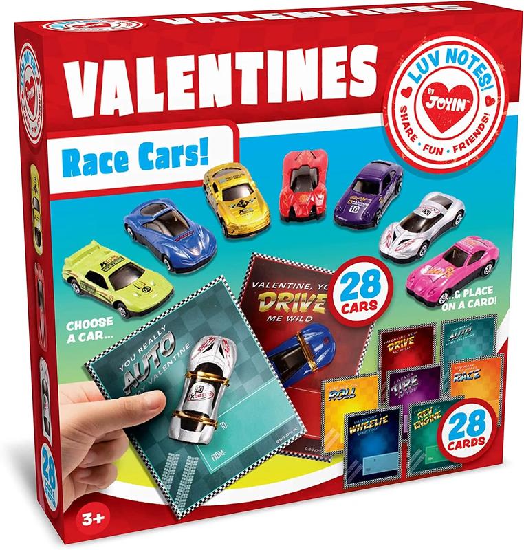 5. 28Pcs Die-cast Racing Cars With Kids Valentines Cards Classroom Exchange Valentine's Day Gifts for Kids