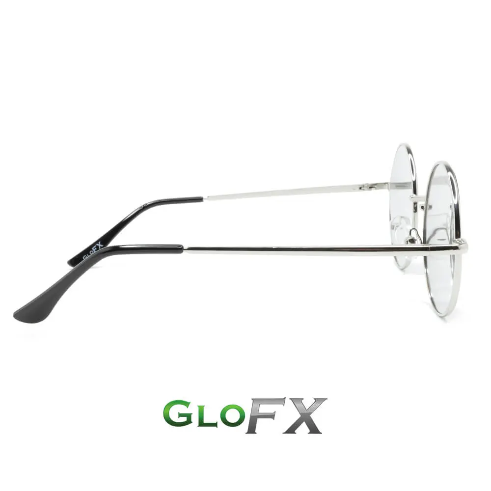 GloFX Imagine Diffraction Glasses will take you back to the 60's in style. Inspired by the hippie counterculture movement and housed in a sleek but sturdy metal frame, the lenses are just as beautiful to look at as they are to look through. GloFX Diffraction Lenses always feature our laser etched tinted diffraction lenses that feature 3 times the diffraction effect of our competitors.
