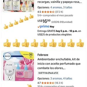 Los olores quien vienen incluidos ninguno es agradable vienen en tamaño diminutivo el difusor NO me gustó tienes que dejarlo encendido 24/7 para que mantenga el olor en cuanto lo apagas se va el olor muy costoso para eso, prefiero mil veces el ambientador que publique total todos hay que recargarlo