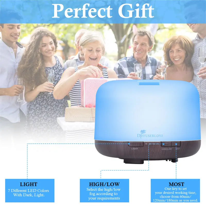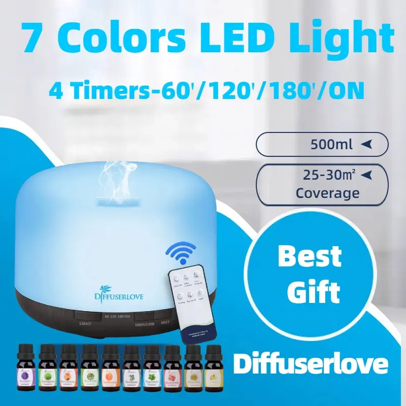 ·【500ML Capacity】 Large 500ml water capacity that can continue use up to 7 hours each time. Aromatherapy Essential oil diffuser can purify air effectively. Perfect gift for family and friends. Protect your family from excessively dry air, dust, and so on!