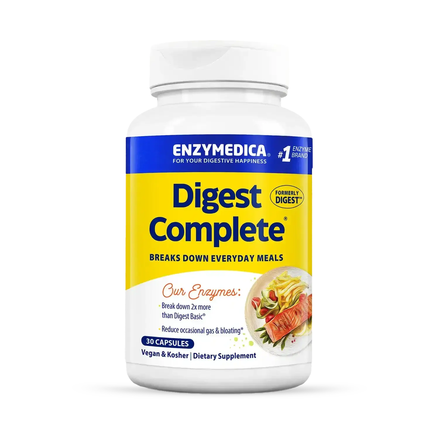 IngredientsDigest Complete® Enzyme Blend 215 mg,Carbohydrate-Digesting Enzymes: Amylase Thera-blend® (12000 DU),Glucoamylase (25 AGU),Alpha Galactosidase (125 GalU),Maltase (150 DP),Invertase (120 SU) Protein-Digesting Enzyme: Protease Thera-blend® (42000 HUT) Fiber-Digesting Enzymes:Cellulase Thera-blend® (1250 CU),Pectinase,(35 Endo-PGU),Xylanase (250 XU),Hemicellulase (15 HCU) Fat-Digesting Enzyme: Lipase Thera-blend® (1,500 FIP),Lactose-Digesting Enzyme: Lactase (500 ALU),100% vegetarian capsule (HPMC,water)