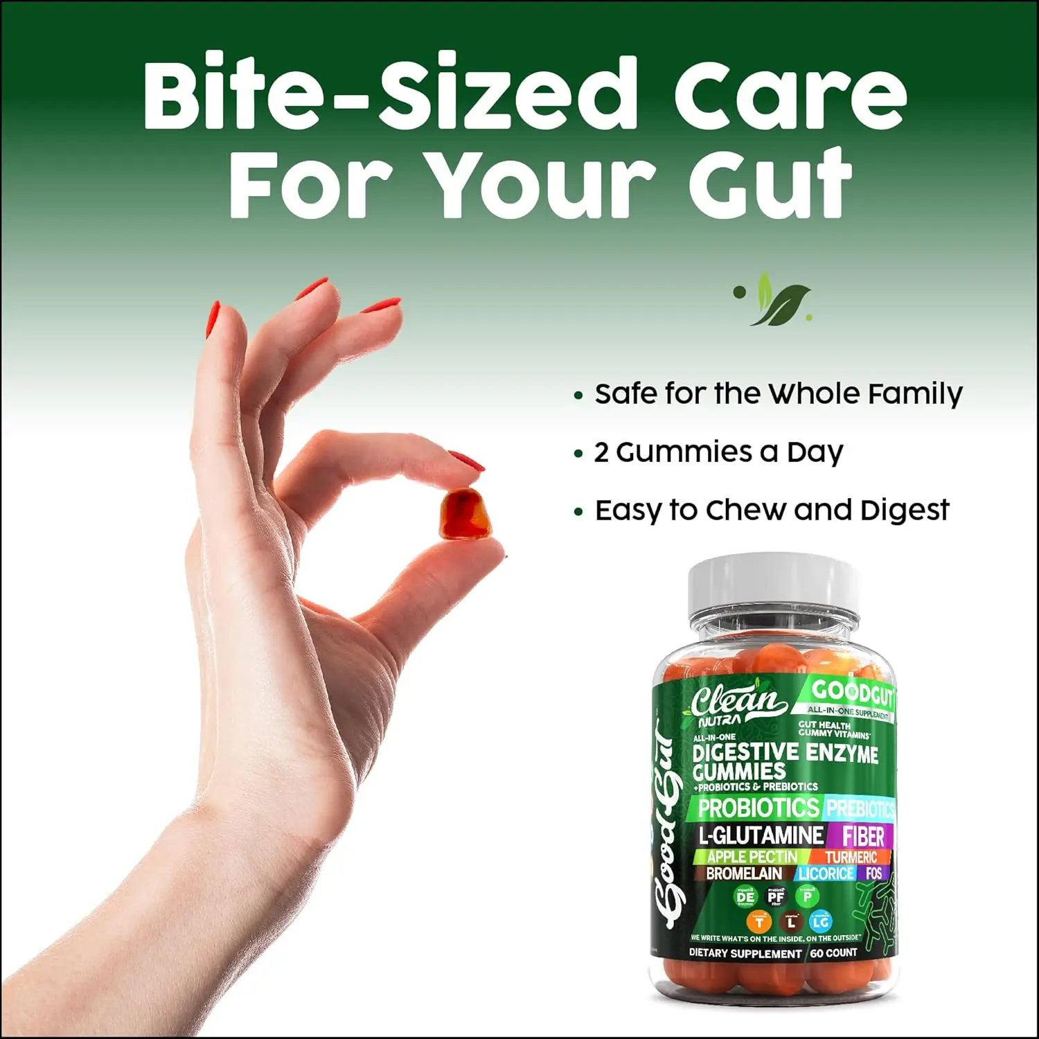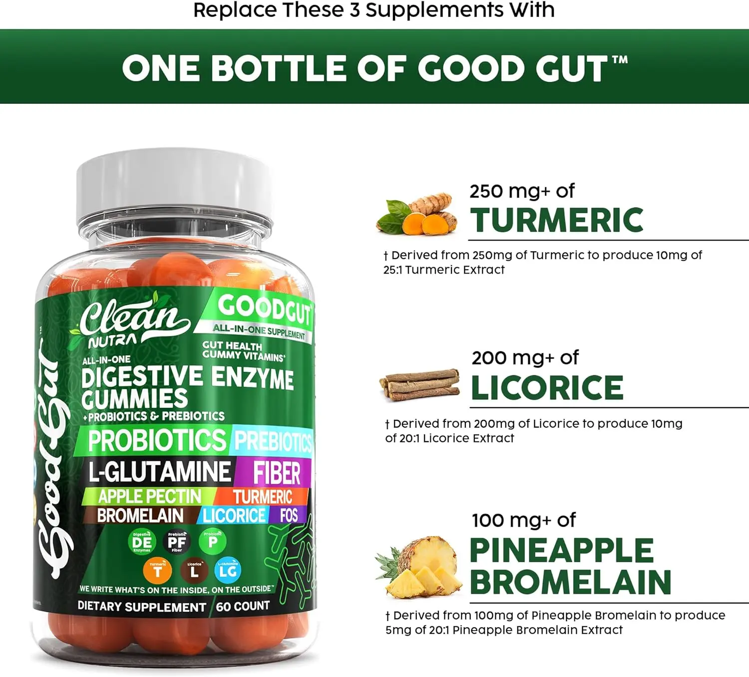 These vegan gummies are made from plant-based ingredients and include a powerful combination of inulin, licorice, bromelain, turmeric, fiber, l-glutamine, apple pectin, plus prebiotics and probiotics to help maintain a healthy gut.