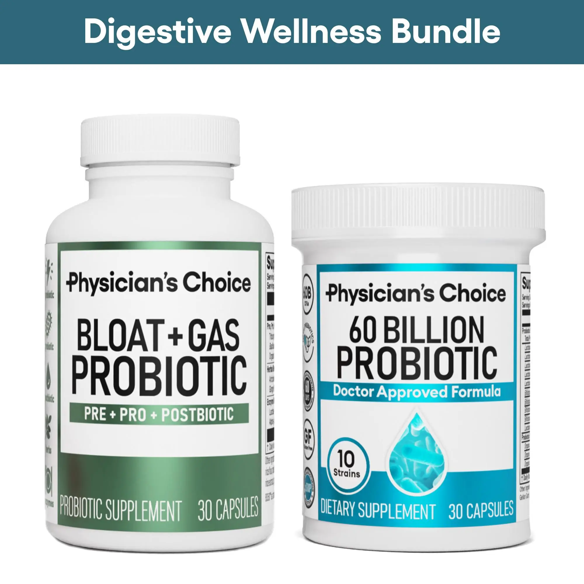 Physician's Choice Digestive Wellness Bundle combines Bloat & Gas Probiotic and 60 Billion Probiotic for complete digestive support. Ideal for gut health and comfort š±
