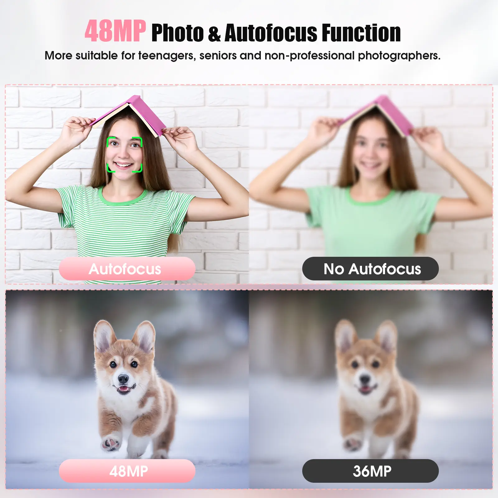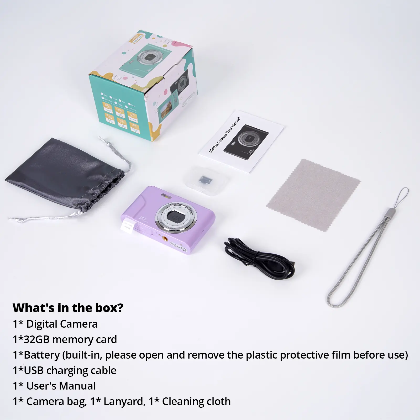 Ever wanted a camera that's as fun and easy to use as your smartphone but takes way better photos? Meet this Auto Focus Digital Camera, perfect for teenagers and beginners eager to explore photography. It snaps crisp 48MP images and records smooth Full HD 1080P videos, so your memories look vibrant and clear. The 16x digital zoom lets you capture details from afar, while the anti-shake feature keeps your shots steady. Lightweight and portable at just 16.5 grams, it's easier to carry than most phones, making it ideal for kids on the go. Plus, with a 2.4-inch OLED display, selfie timer, continuous shooting, LED fill light, and beauty effect, this camera is packed with features that make photography fun and creative. It supports TF and MMC memory cards up to 256GB, and includes a 32GB card to get you started right out of the box. Whether it’s a birthday gift or a first camera, this stylish, colorful device makes capturing moments a breeze. Ready to snap your next adventure? Grab this mini digital camera and start creating memories today!