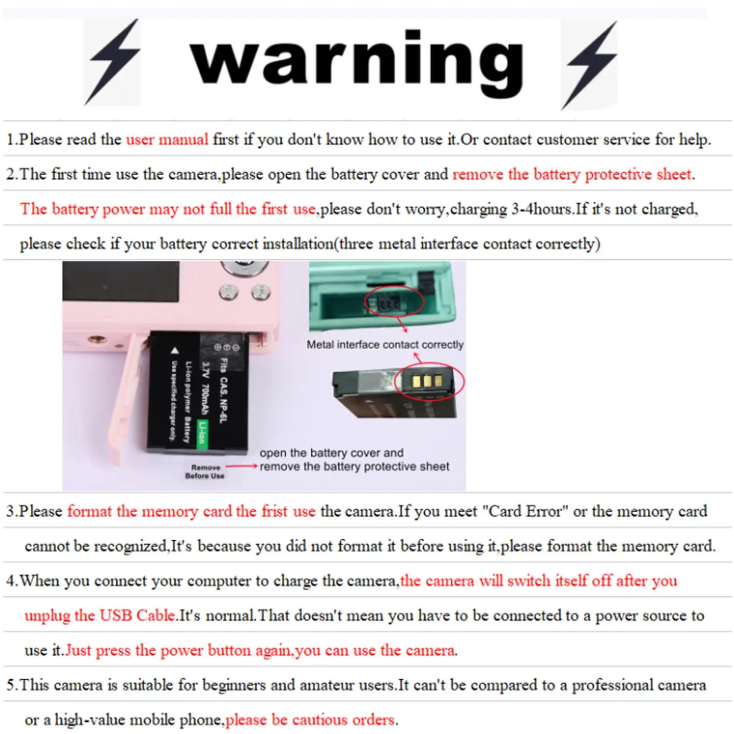 Love the camera! Manuel is easy to read, came way faster than expected. This was definitely worth the price:)