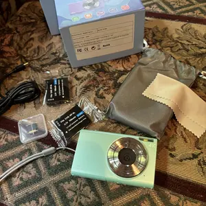 i love this camera it has such a cute aesthetic to it and it’s great for creating high school memories with friends❤️comes with a box with everything you need for it to work,make sure to get a usb cord to transfer photos or videos to phone