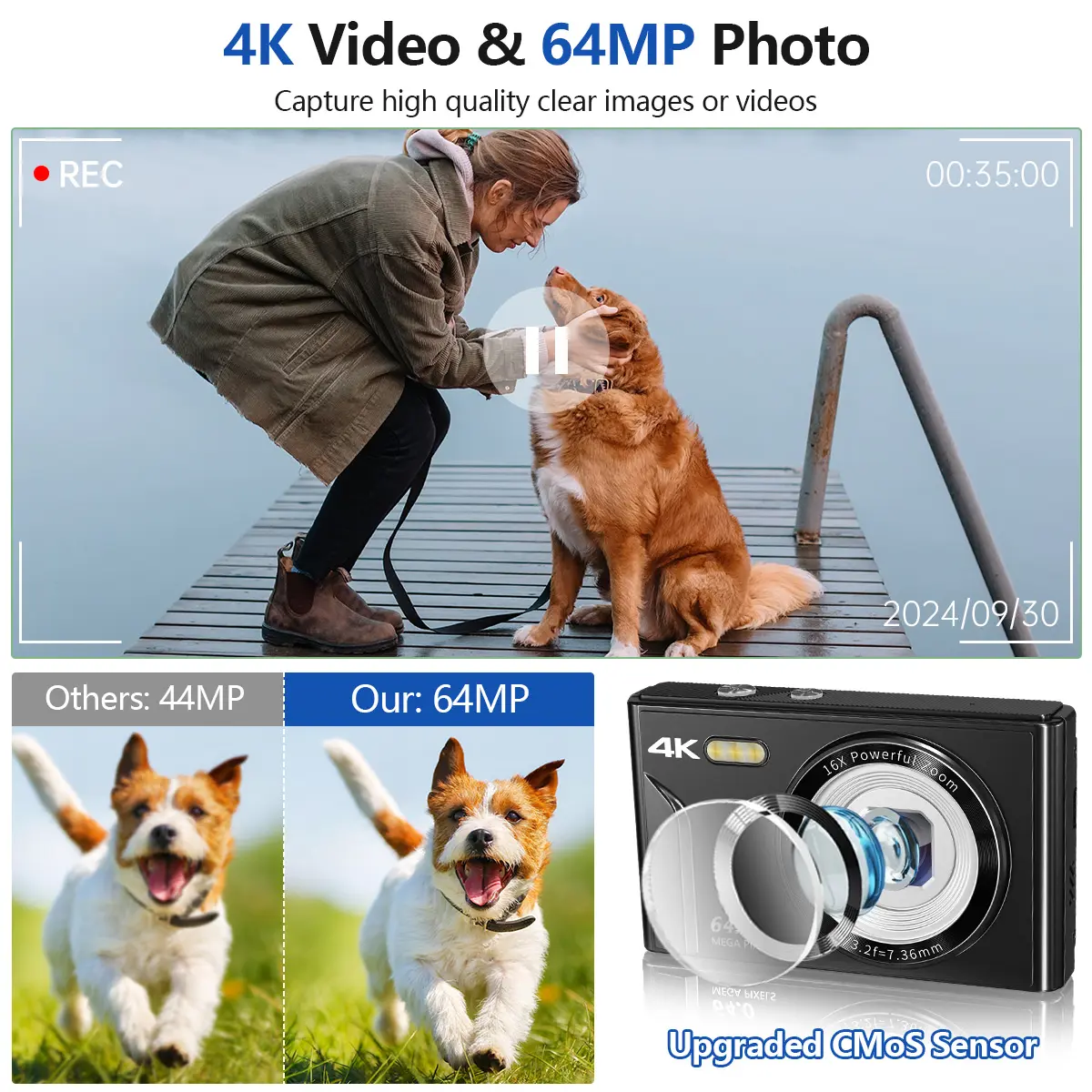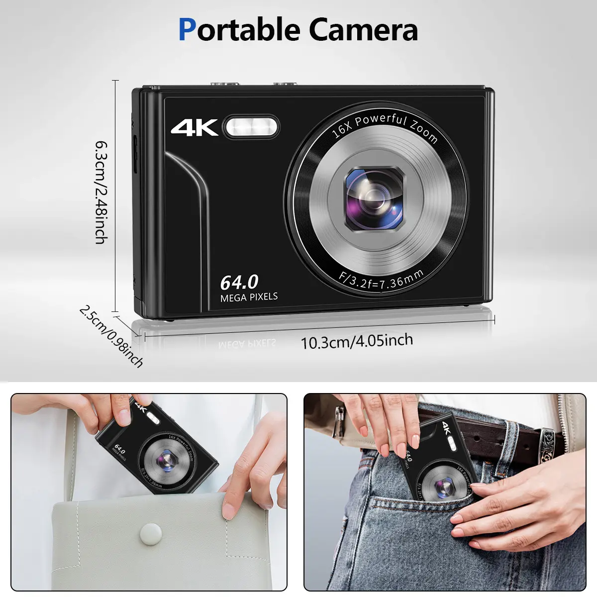Multi-functional 4K & 64MP Digital Camera, Auto Focus Digital Camera, 16x Digital Zoom Cameras, Compact & Portable Mini Camera with 2.8" IPS Screen, 32G Memory Card and 1200 mAh Battery for Teens & Beginners, Seniors, Perfect Gifts for Halloween Outdoorfu