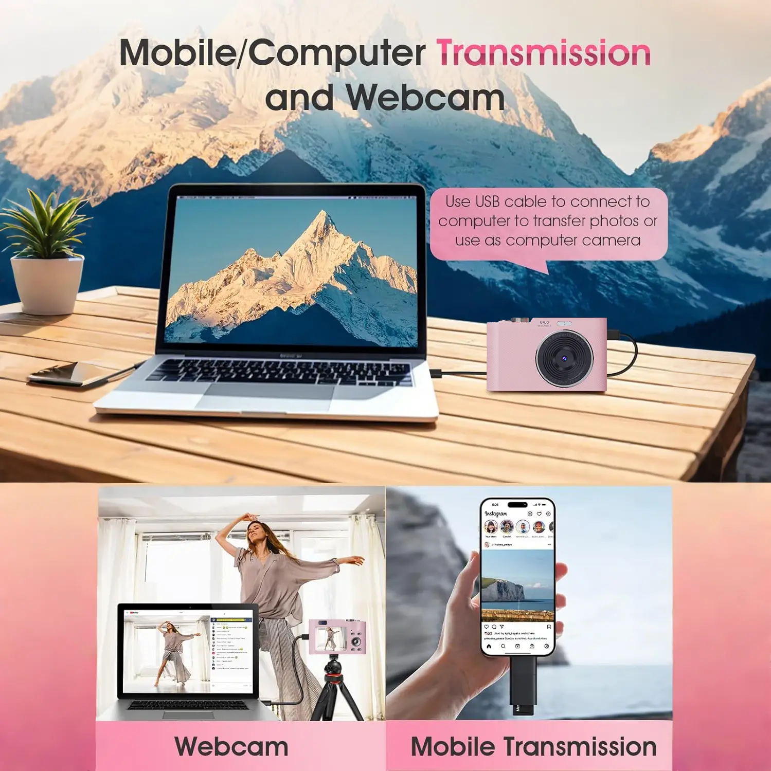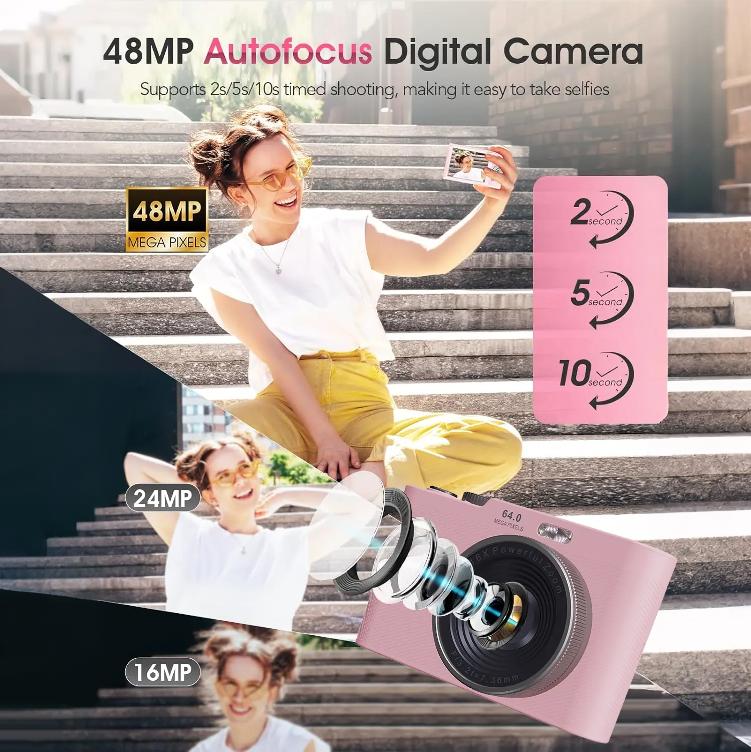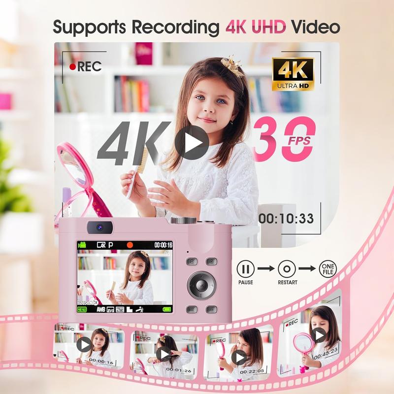 Capture stunning FHD 1080P video and 44MP photos with this compact digital camera. Ideal for vlogging or everyday moments, it offers crisp visuals and high-resolution images. This point-and-shoot camera is a great gift under $30, $50, or $100. It's perfect for boys, girls, and kids.