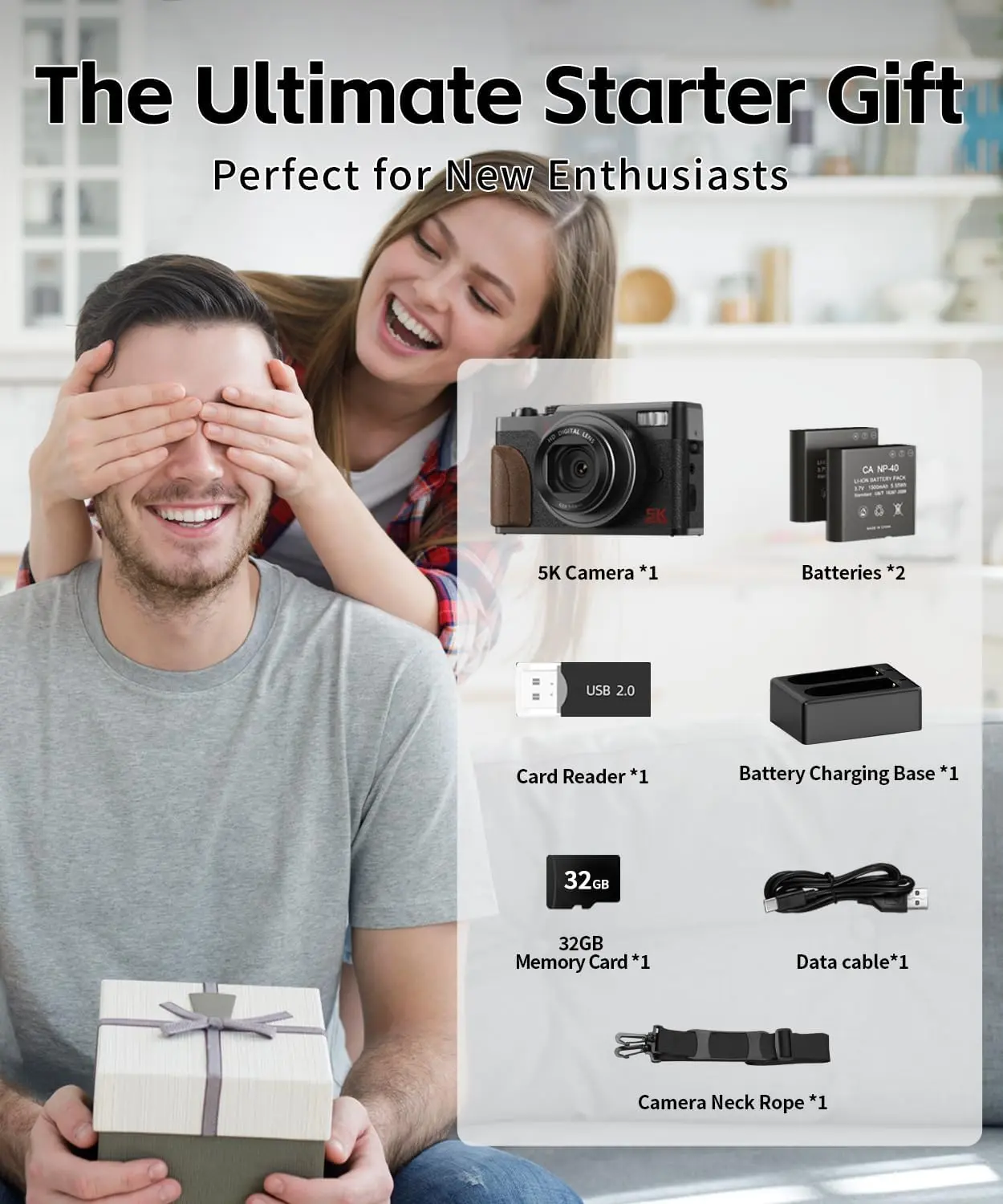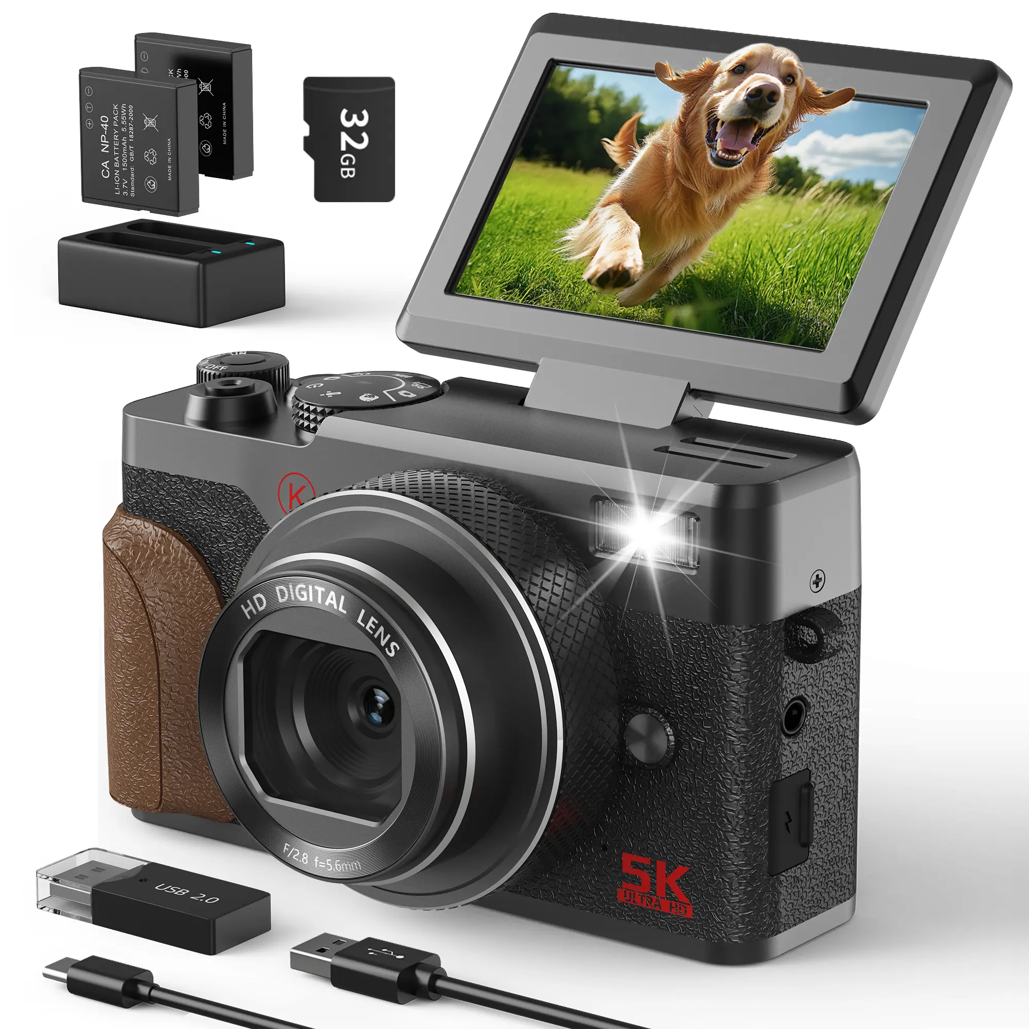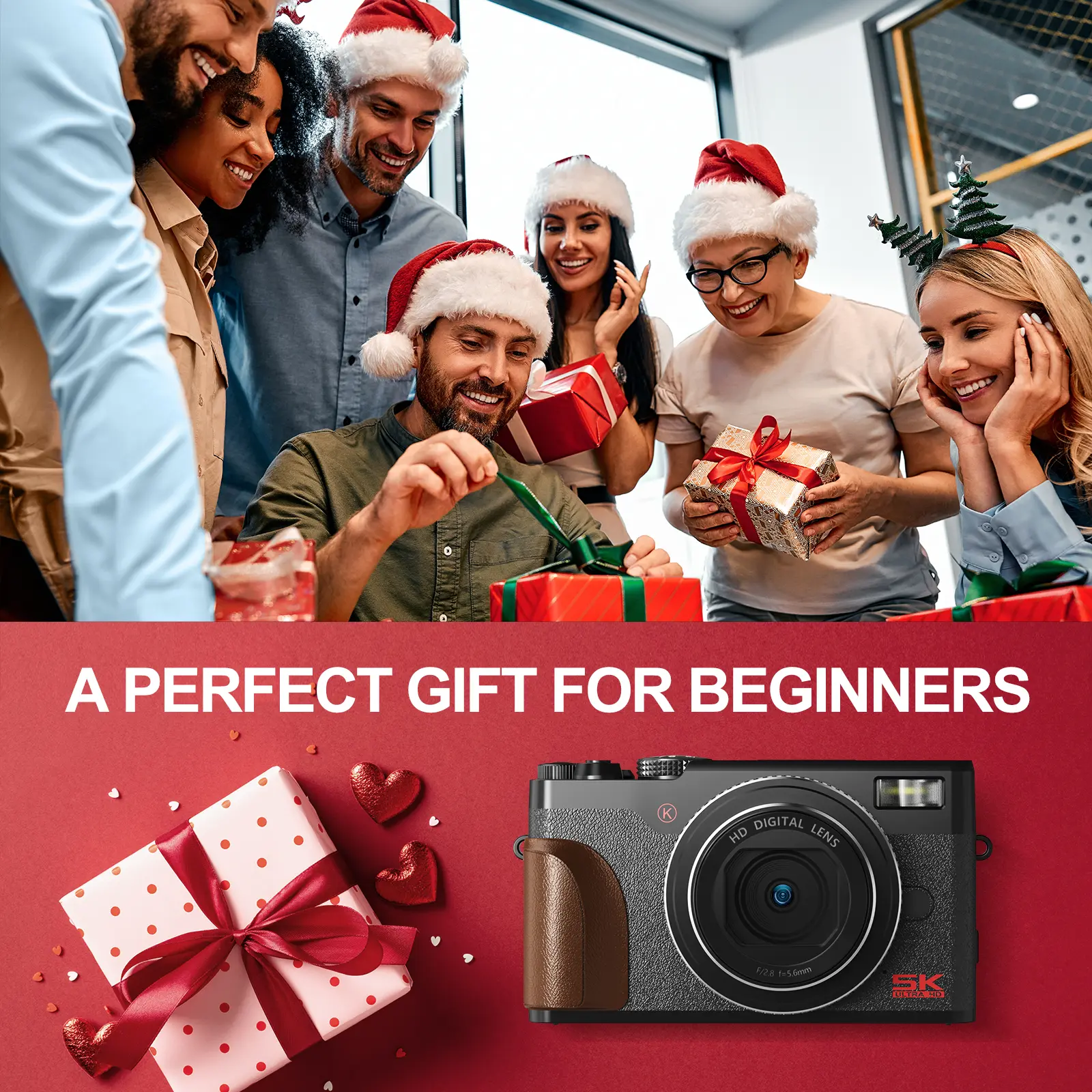 Ever wanted a camera that’s as fun to use as it is powerful? Meet the NBD 5K Retro Digital Camera, your new go-to for capturing life’s best moments in stunning 64MP photos and crisp 5K videos. Whether you're vlogging, snapping selfies, or shooting time-lapses, the 3-inch flip screen rotates a full 180°, so you’re always in the frame. Zoom in up to 18X digitally to catch details far away without losing clarity. Packed with features like fill light, built-in microphone, and speaker, this camera handles low-light scenes and live broadcasts like a pro. Plus, it’s perfect for teens, adults, and anyone who loves photography but wants an easy-to-use gadget. The package includes two rechargeable batteries, a 32GB micro SD card, charger, and USB cable—everything you need to start shooting right out of the box. Lightweight and sleek, it’s a fantastic gift for yourself or a loved one ready to dive into creative photography. Ready to elevate your photo game? Grab the NBD 5K and start capturing memories that shine!