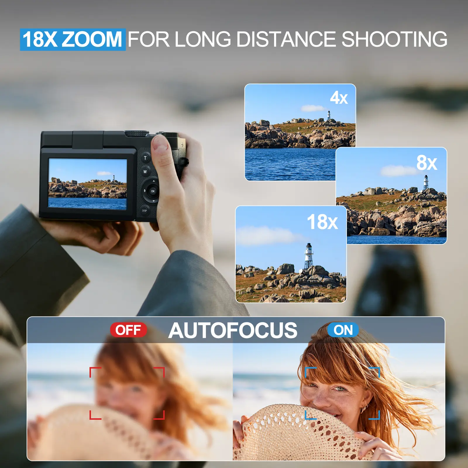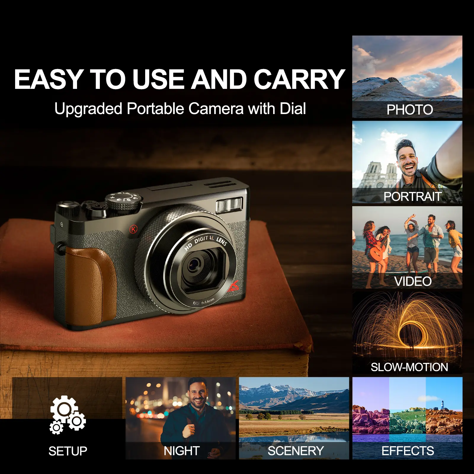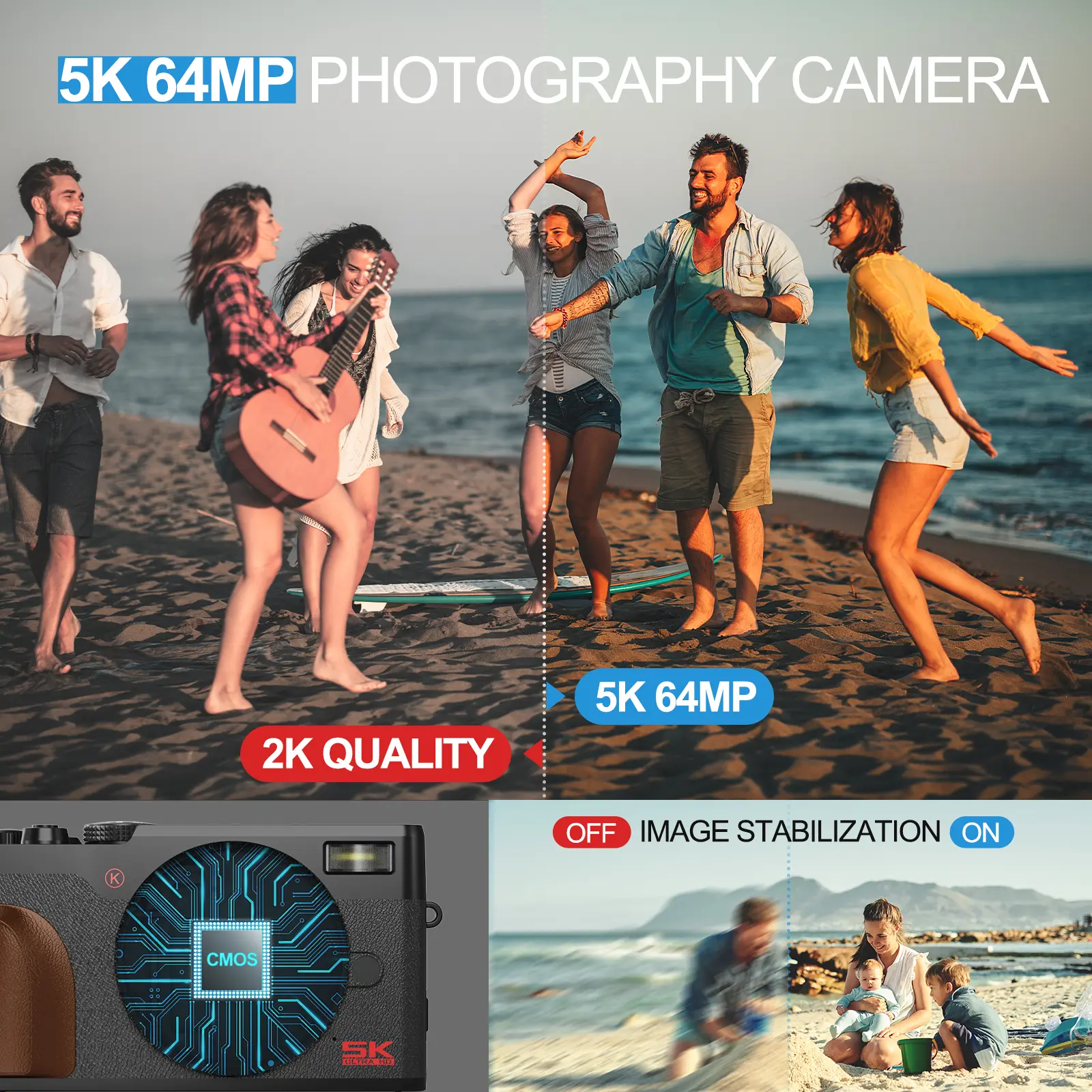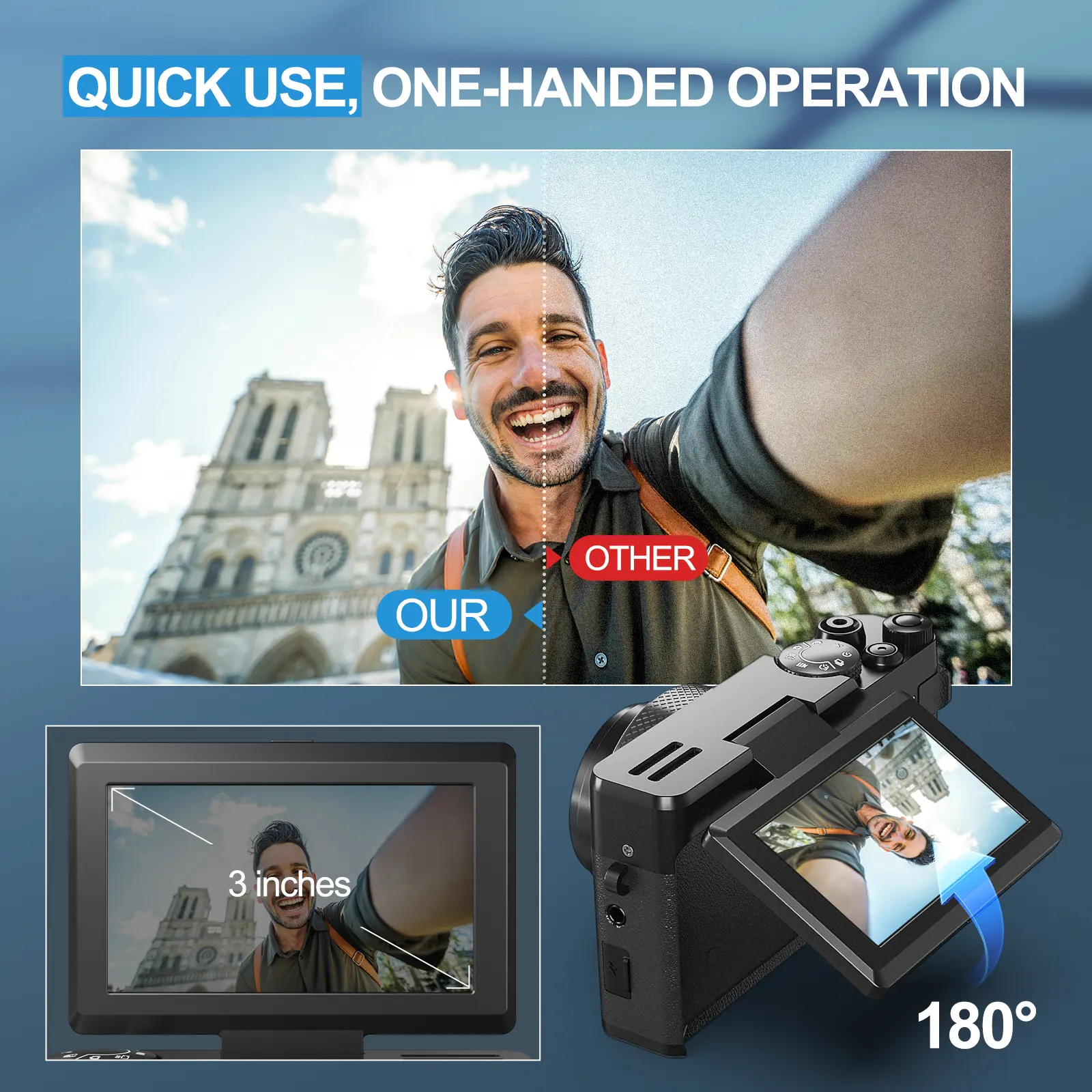 Ever wanted a camera that’s as fun to use as it is powerful? Meet the NBD 5K Retro Digital Camera, your new go-to for capturing life’s best moments in stunning 64MP photos and crisp 5K videos. Whether you're vlogging, snapping selfies, or shooting time-lapses, the 3-inch flip screen rotates a full 180°, so you’re always in the frame. Zoom in up to 18X digitally to catch details far away without losing clarity. Packed with features like fill light, built-in microphone, and speaker, this camera handles low-light scenes and live broadcasts like a pro. Plus, it’s perfect for teens, adults, and anyone who loves photography but wants an easy-to-use gadget. The package includes two rechargeable batteries, a 32GB micro SD card, charger, and USB cable—everything you need to start shooting right out of the box. Lightweight and sleek, it’s a fantastic gift for yourself or a loved one ready to dive into creative photography. Ready to elevate your photo game? Grab the NBD 5K and start capturing memories that shine!